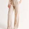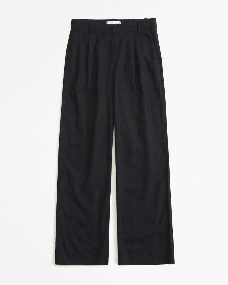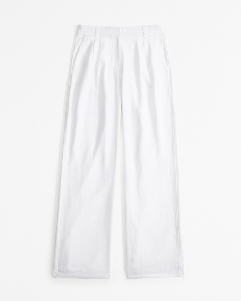 Our signature A&F Sloane Tailored Pant with a low rise, in our breezy linen-blend fabric, that’s perfect for dressing up or down. Featuring figure-flattering pleating details, a functional fly and pockets and a partially elasticated waistband for ultimate adjustability. The intended length hits the bottom of a flat shoe. Please reference our size chart to determine your perfect size and inseam! Imported.
