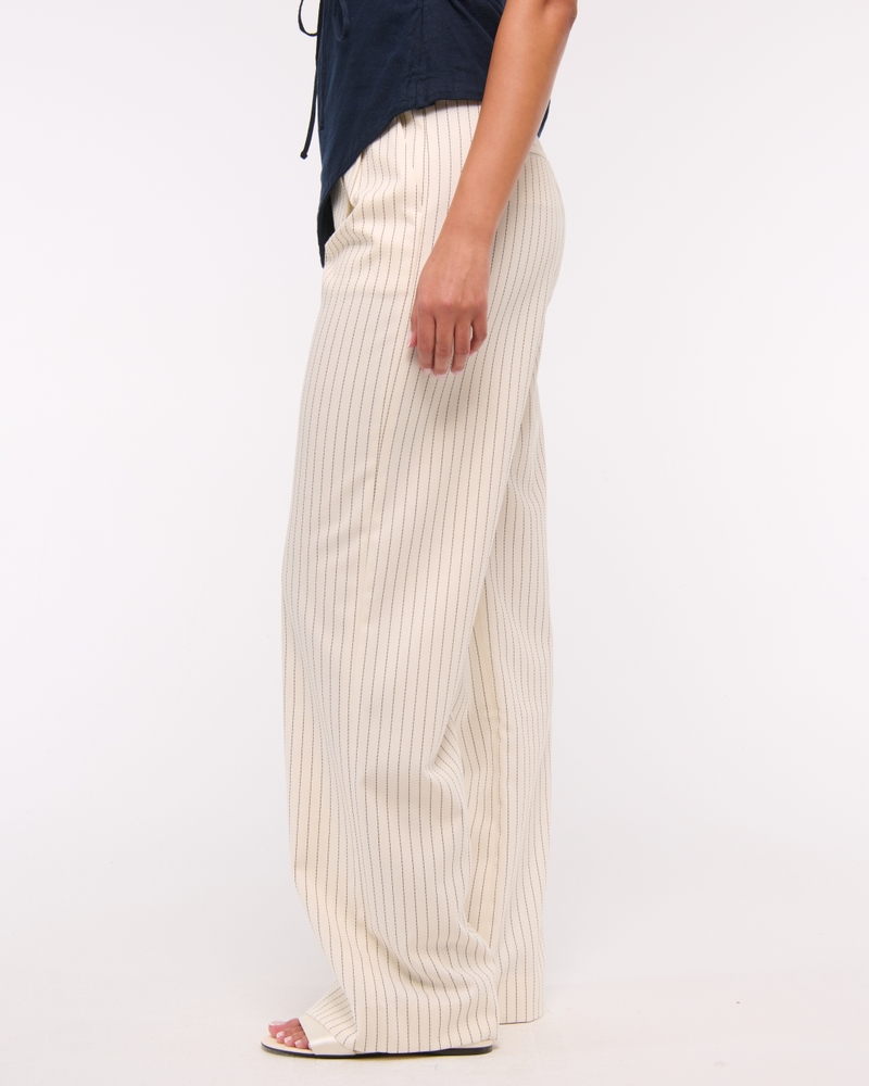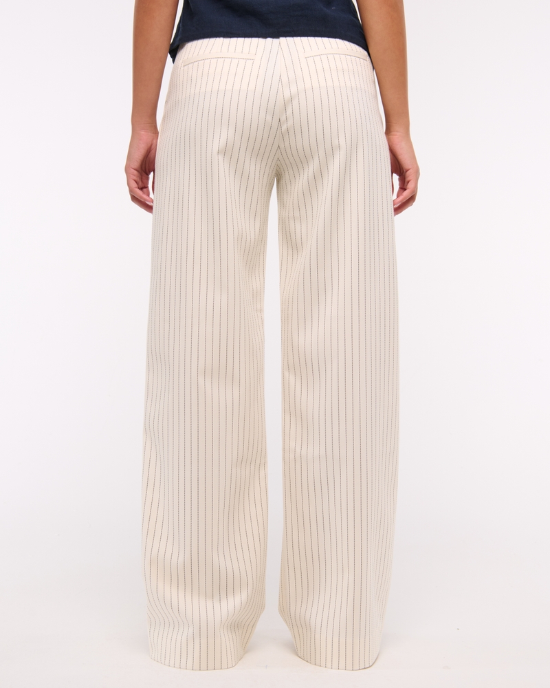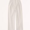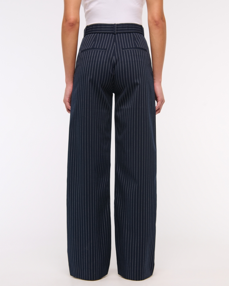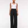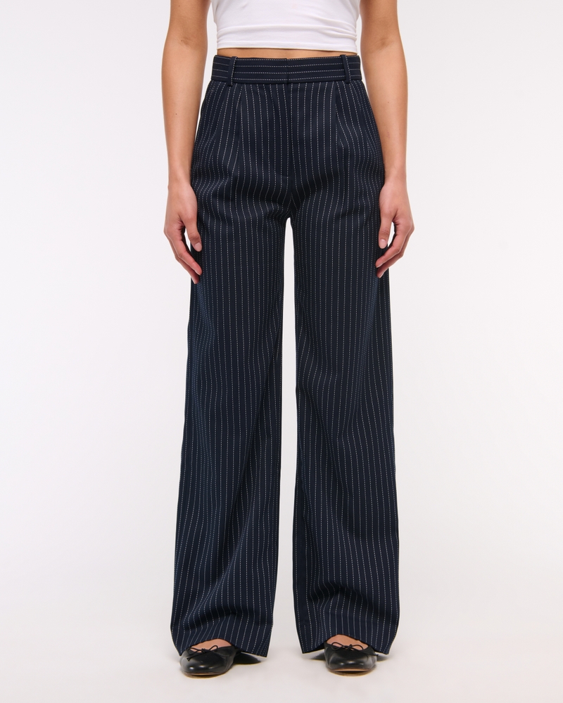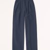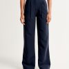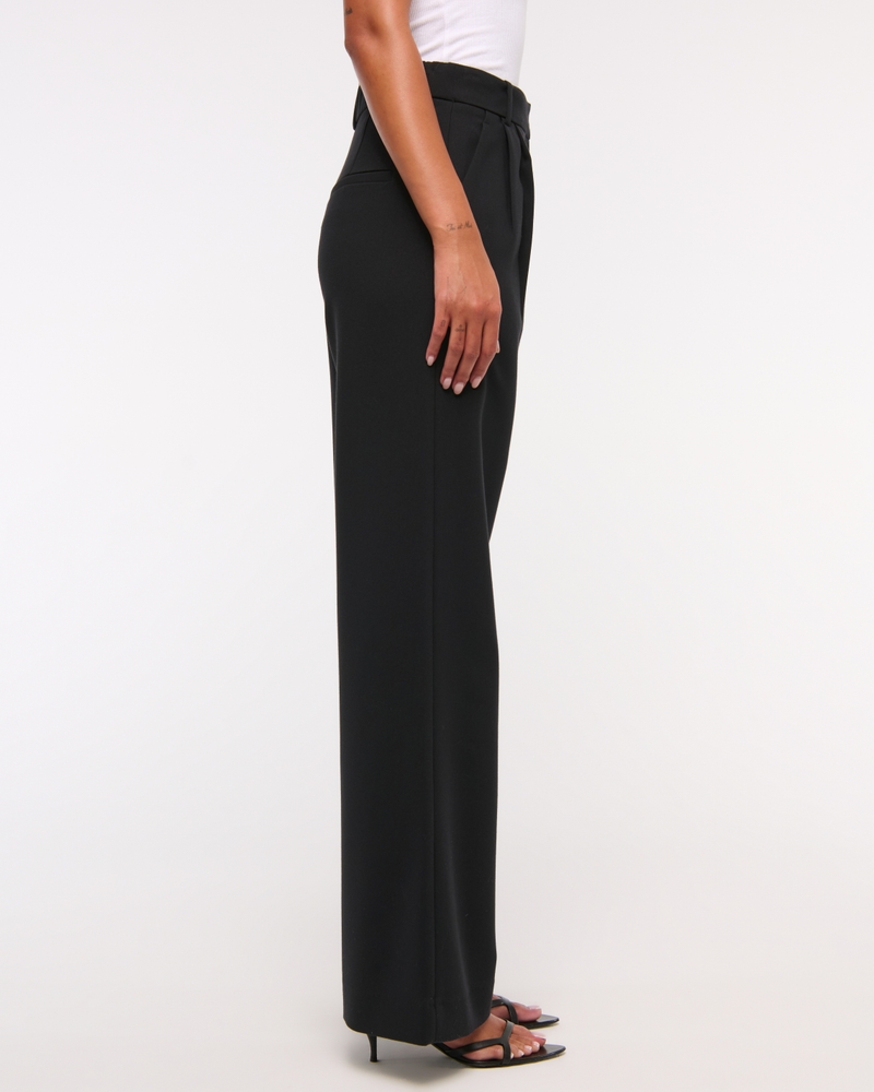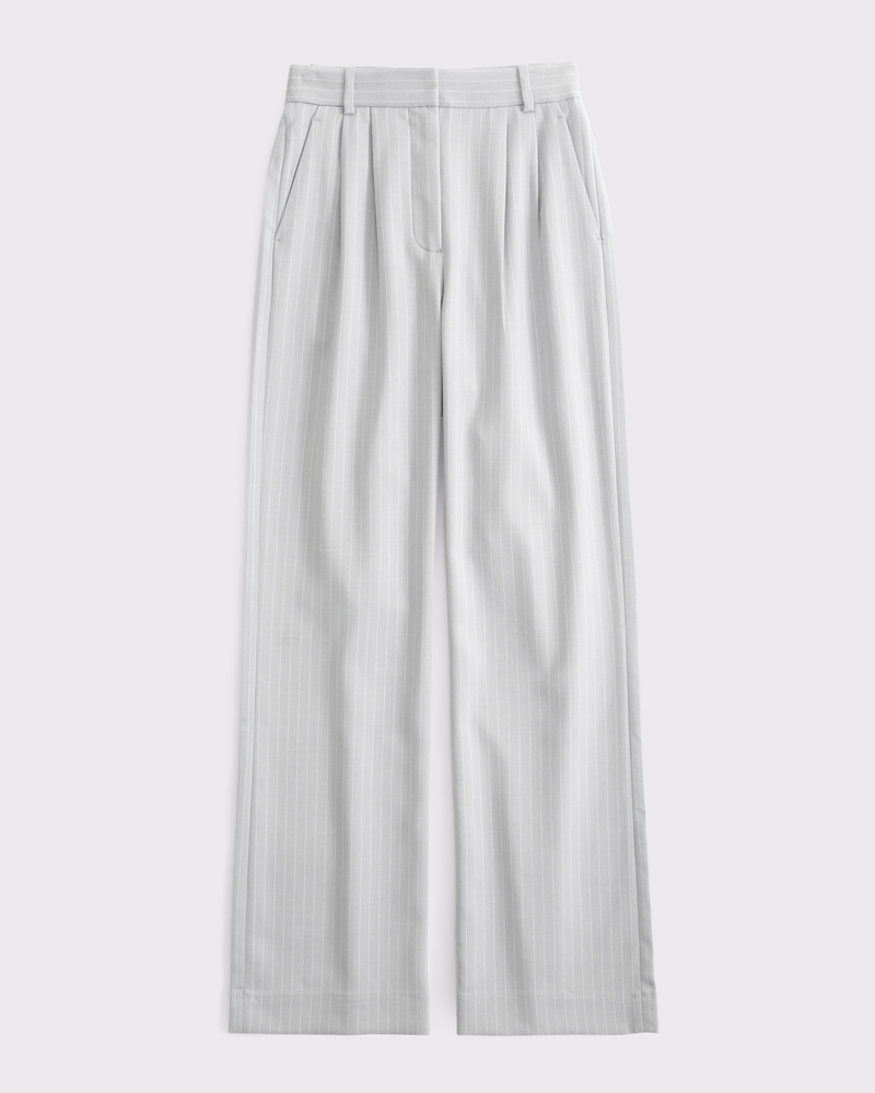 Our signature A&F Sloane tailored pant in our everyday menswear fabric. The Sloane Tailored Pant is an ultra high rise tailored wide leg pant with figure-flattering pleat details, a functional fly and a partially elasticated waistband for ultimate adjustability. This fit is relaxed through the hips, and eases into a wide, full-length leg shape. The body of this garment contains 66% recycled polyester. Imported.