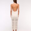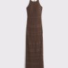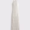 Slim-fitting maxi dress in our soft sweater yarn fabric, featuring a high neckline with on-trend beaded details down the back, crochet-style stitching details throughout and a sheer skirt. Imported.