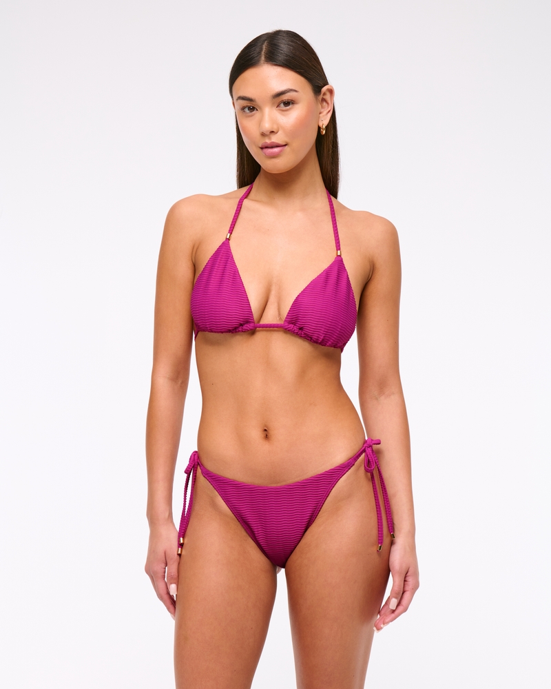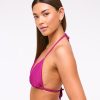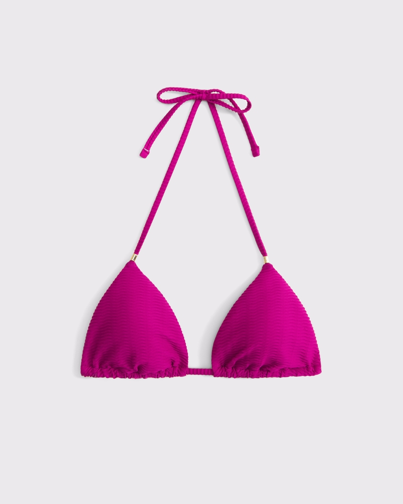 Our new halter triangle bikini top in our core nylon fabric, featuring fully adjustable ties at the neck and at the back, adjustable cups, removable pads and on-trend bead details. Size up for additional coverage at the cup! Imported.