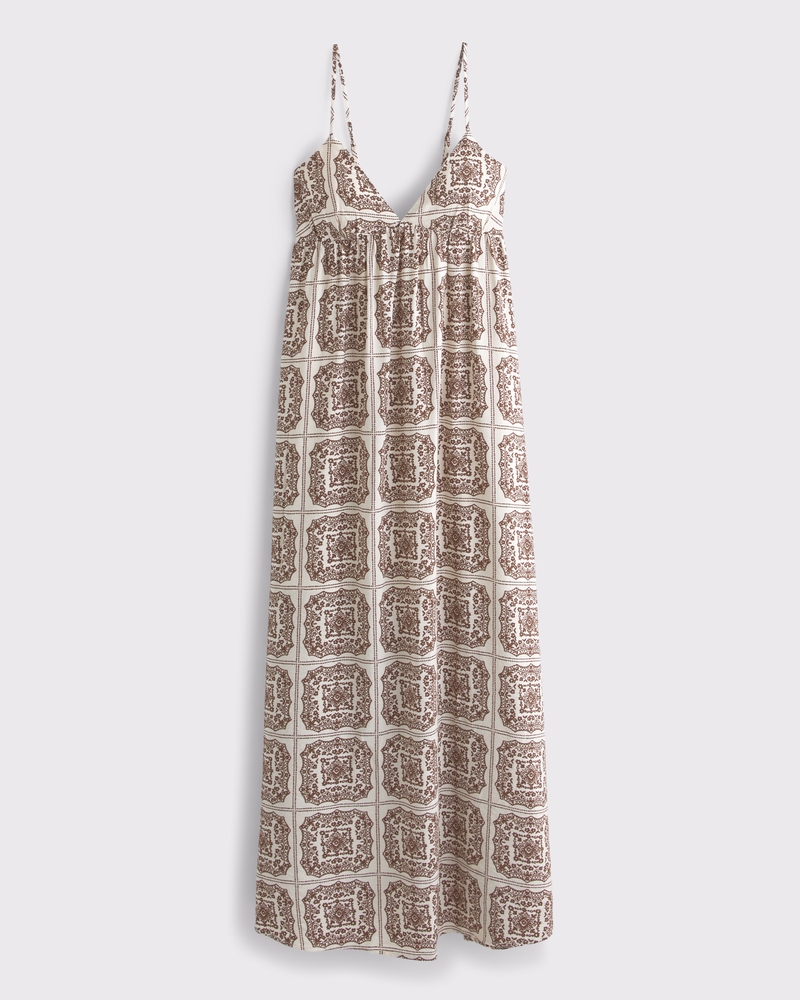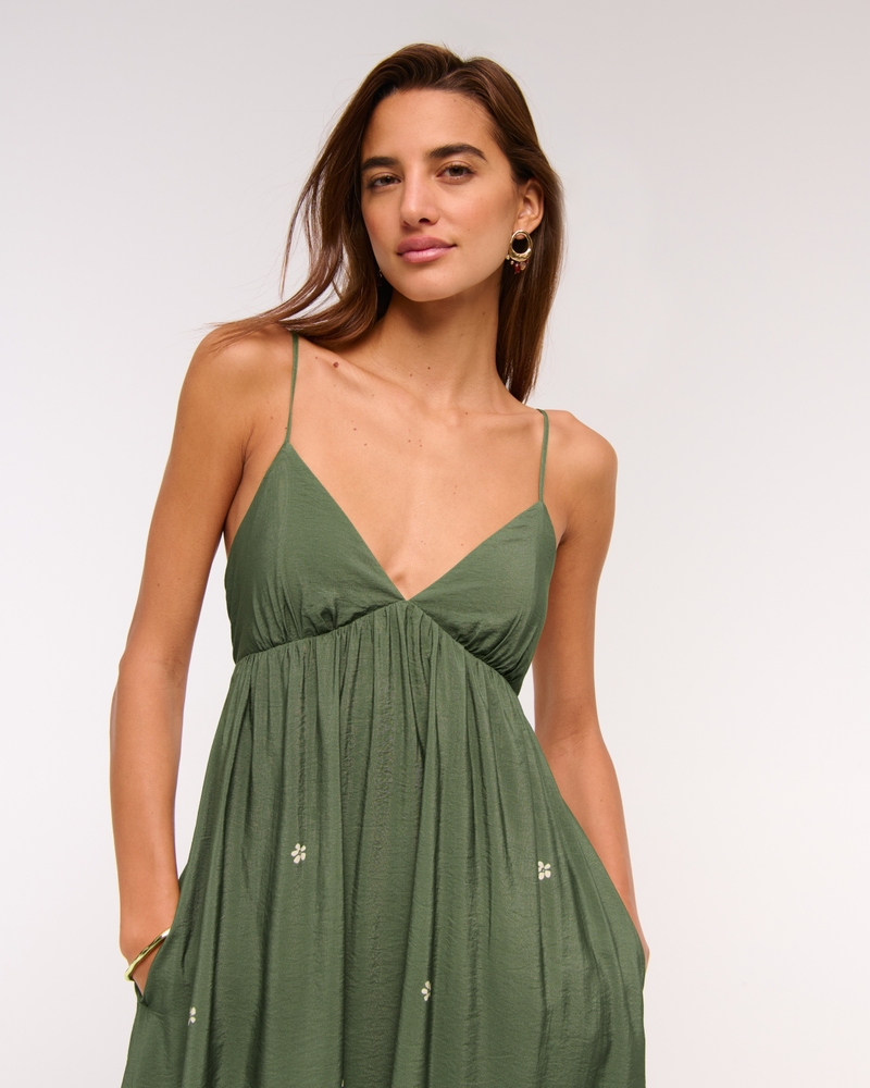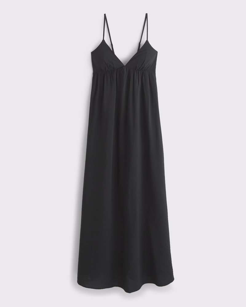 Our new collection built to make bra free that much smoother. Flattering maxi dress in our textured flowy fabric, featuring a babydoll silhouette, v-neckline, adjustable straps, and dainty clasp-back detail – plus a seamed in bra with removable pads. Imported.