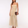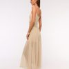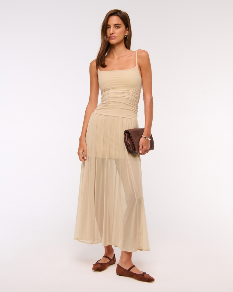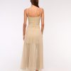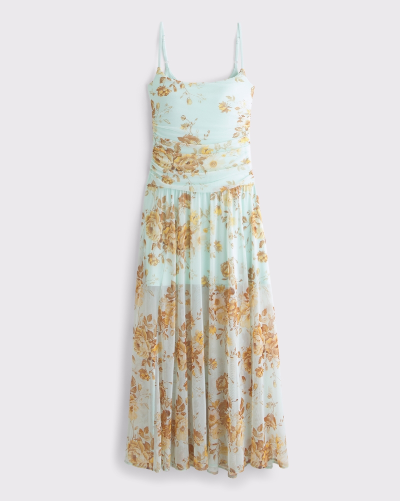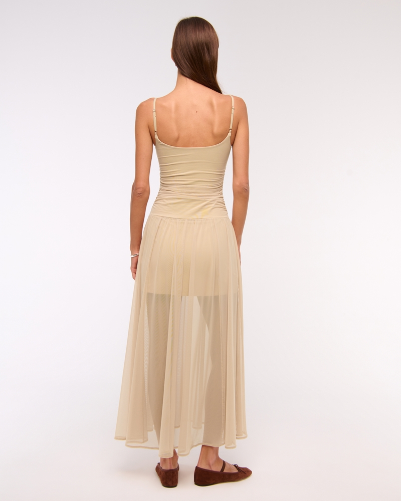 Flattering maxi dress in our knit mesh fabric and fit & flare silhouette, featuring a scoop neckline, adjustable straps, sheer skirt and a seamed-in bra with removable pads. Imported.