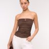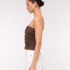Our new collection built to make going bra-free that much smoother. Slim-fitting tube top in our soft mesh fabric, featuring on-trend hardware and draping details along the bodice. Features removable pads for added coverage. Imported.
