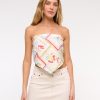 Our new collection built to make going bra-free that much smoother. Flattering strapless tube top in our soft woven fabric, featuring adjustable tie-back detail, built-in shelf bra and on-trend pointed hem. Imported.