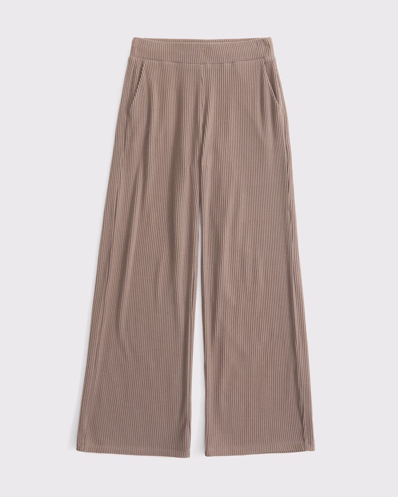 Comfy sweatpants in a soft brushed rib fabric and wide-leg silhouette, with an elasticated waistband, pockets and all-over ribbed detail. Imported.