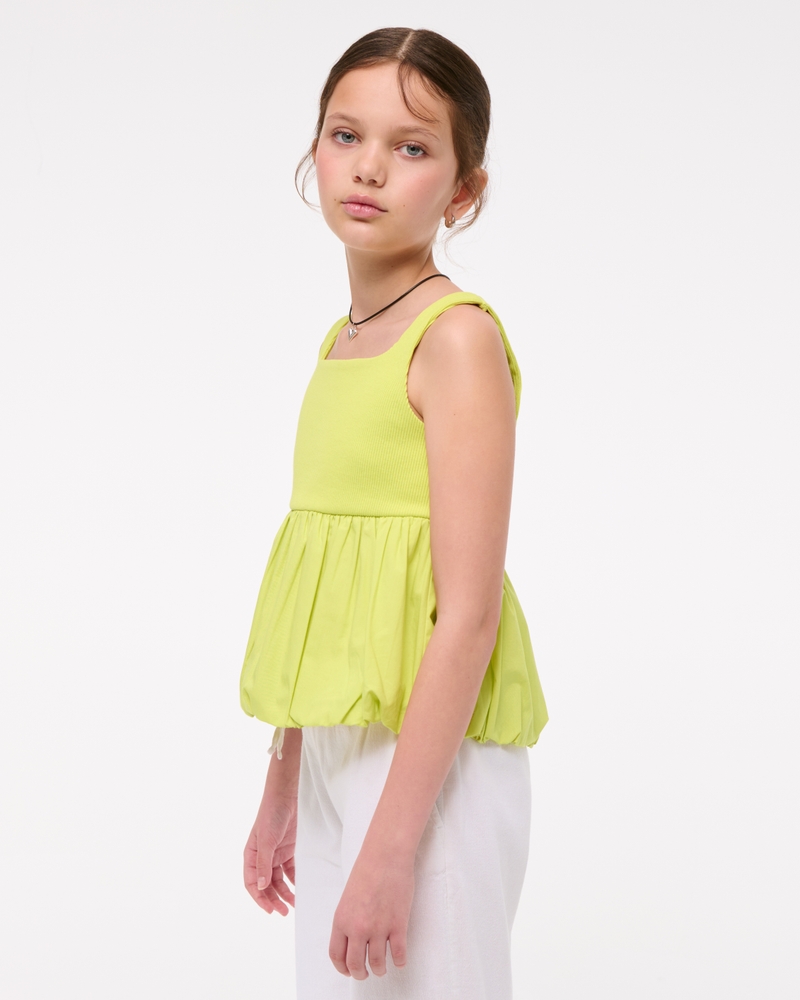Easy-fitting tank in our soft cotton-blend fabric, featuring square neckline and on-trend bubble hem. Imported.