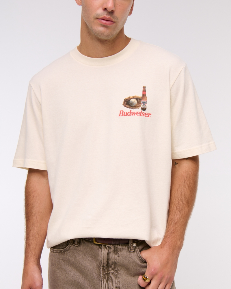 Classic short-sleeve tee in our softAF 180g fabric and vintage oversized-fit silhouette, featuring Budweiser-inspired graphic details at left chest and back and crew neckline. Imported.