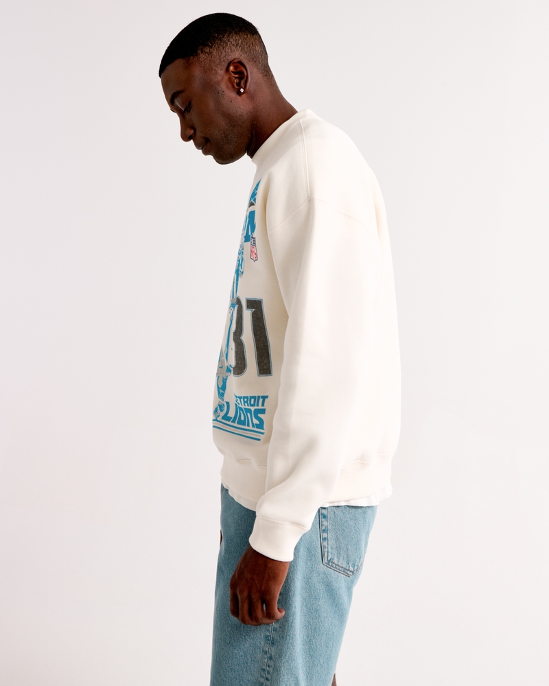 Classic sweatshirt in our softAF fleece fabric and oversized-fit silhouette, featuring Calvin Johnson-inspired graphic detail at chest, crew neckline and banded hem and cuffs. Imported.