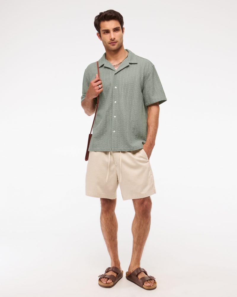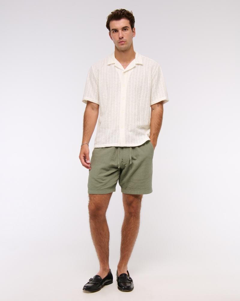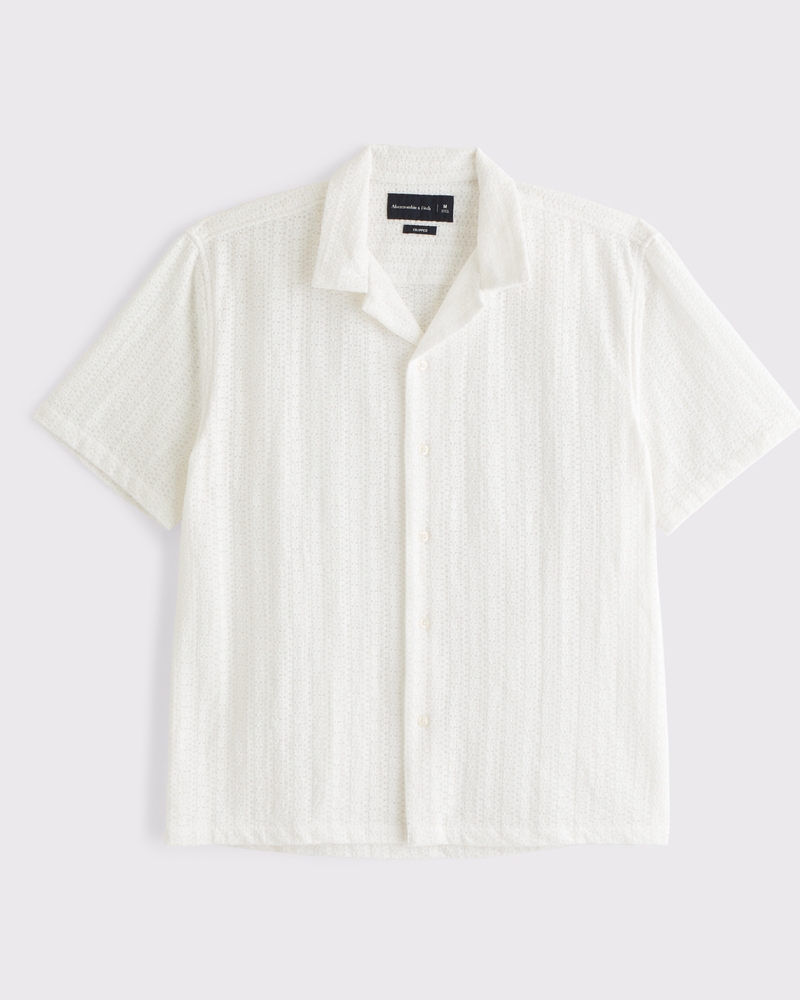 Comfortable short-sleeve button-up shirt in our soft lacy fabric, featuring a relaxed-fit silhouette, resort-style camp collar and straight hem. Imported.