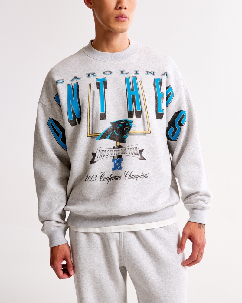 Classic sweatshirt in our softAF fleece fabric and oversized-fit silhouette, featuring Carolina Panthers graphic detail at chest and sleeves, crew neckline and banded hem and cuffs. Imported.