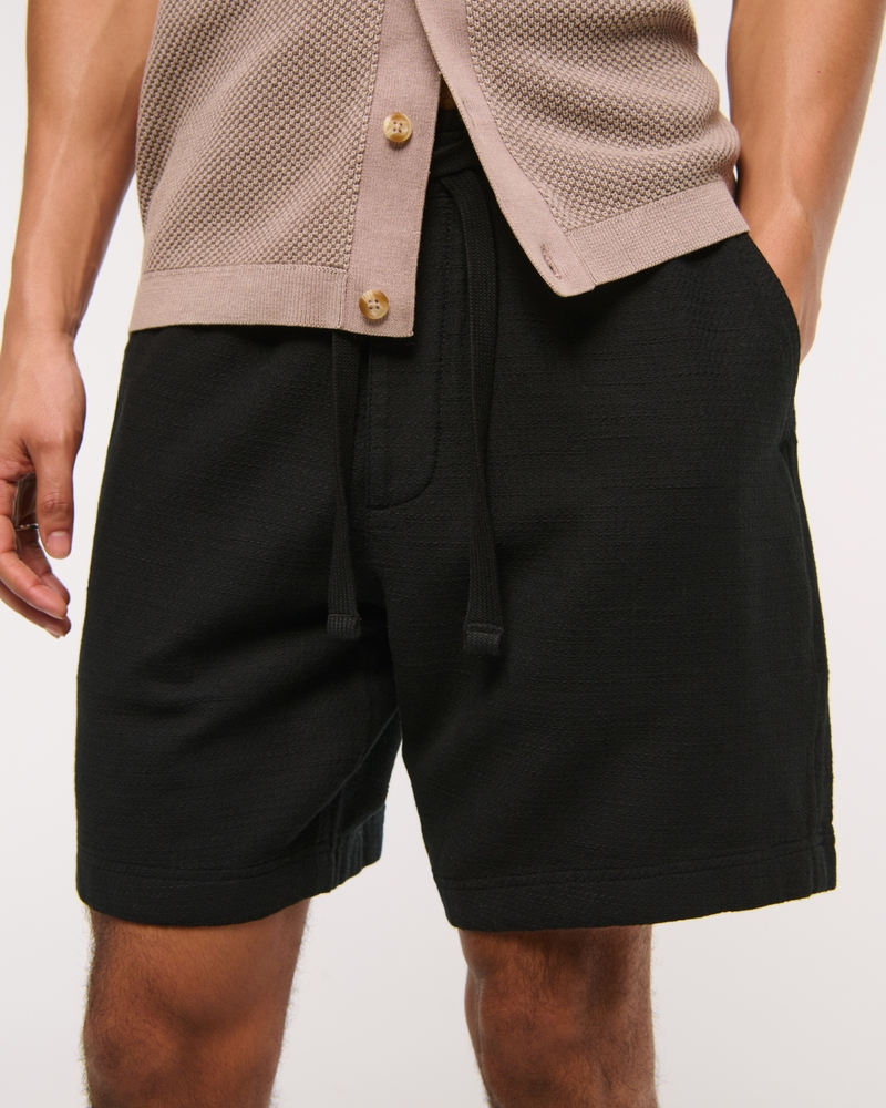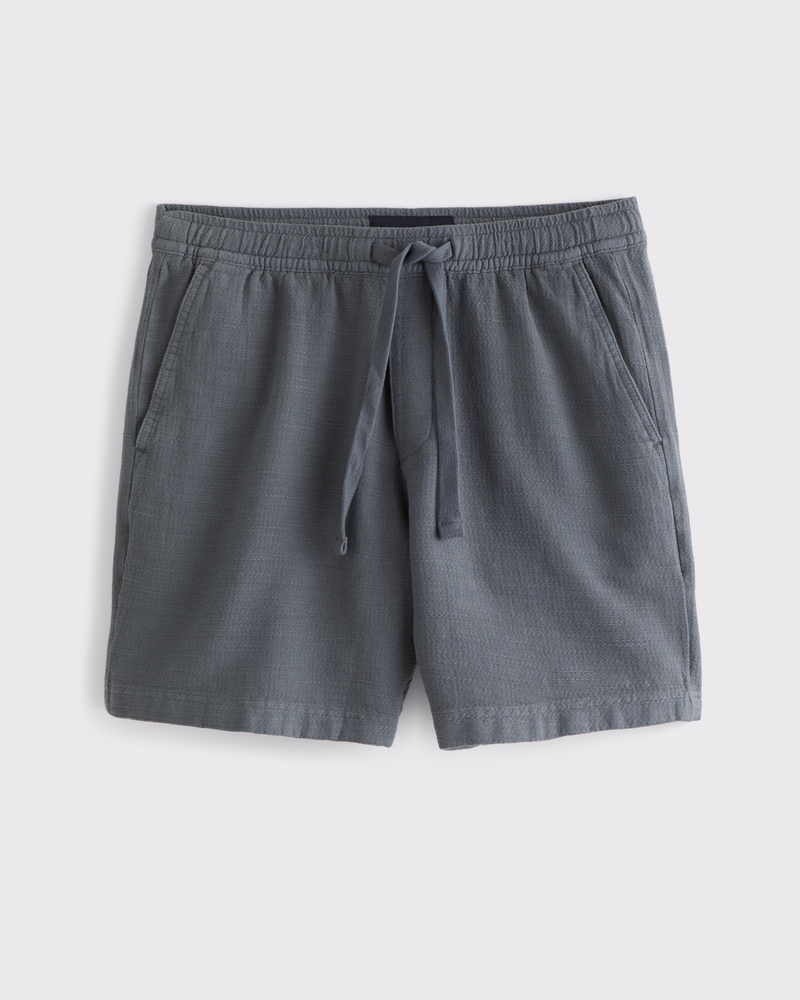 Comfortable 8 inch (20 cm) pull-on style shorts in a cotton slub fabric and relaxed-fit silhouette, featuring an elasticated drawstring waist and pockets throughout. Imported.