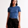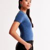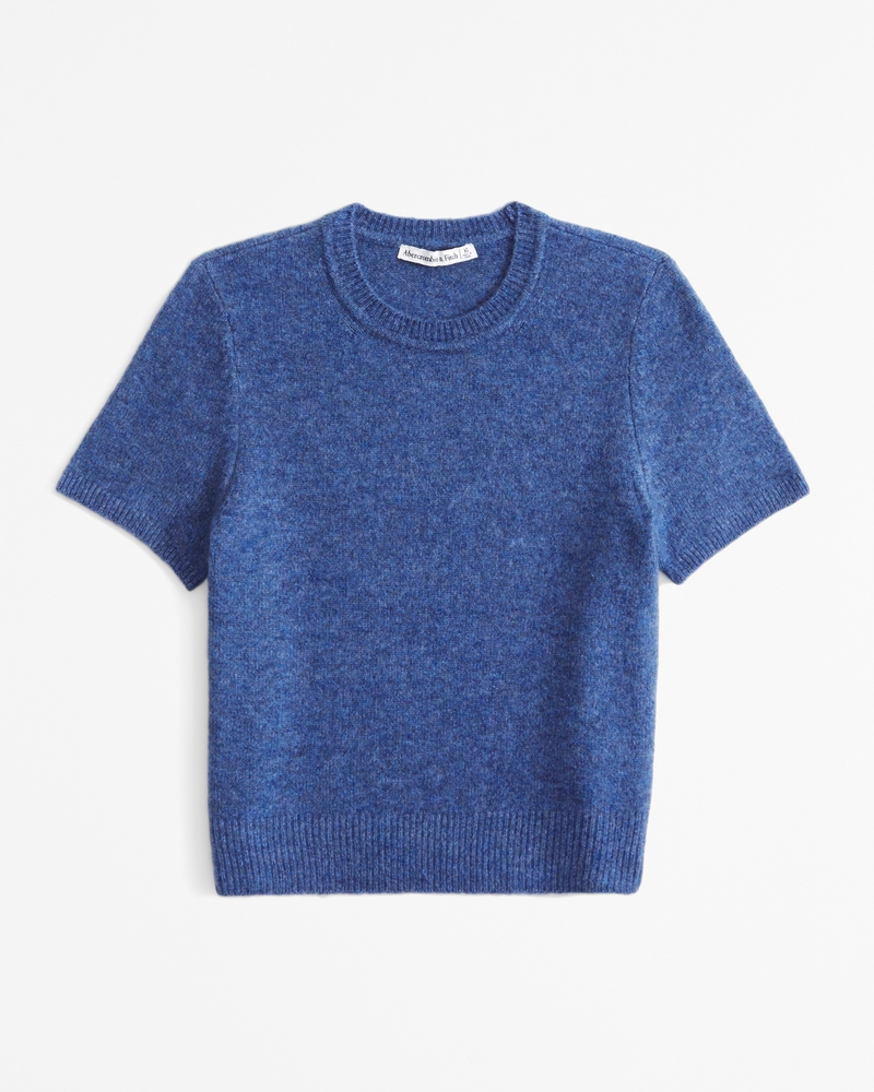 Slim-fitting short-sleeve tee in our super soft sweater yarn fabric, with a crew neckline and rib trim details along the banded hem and cuffs. Pairs perfect with your favorite skirt!