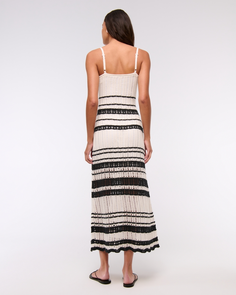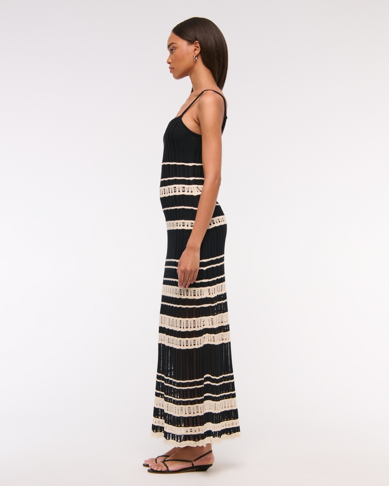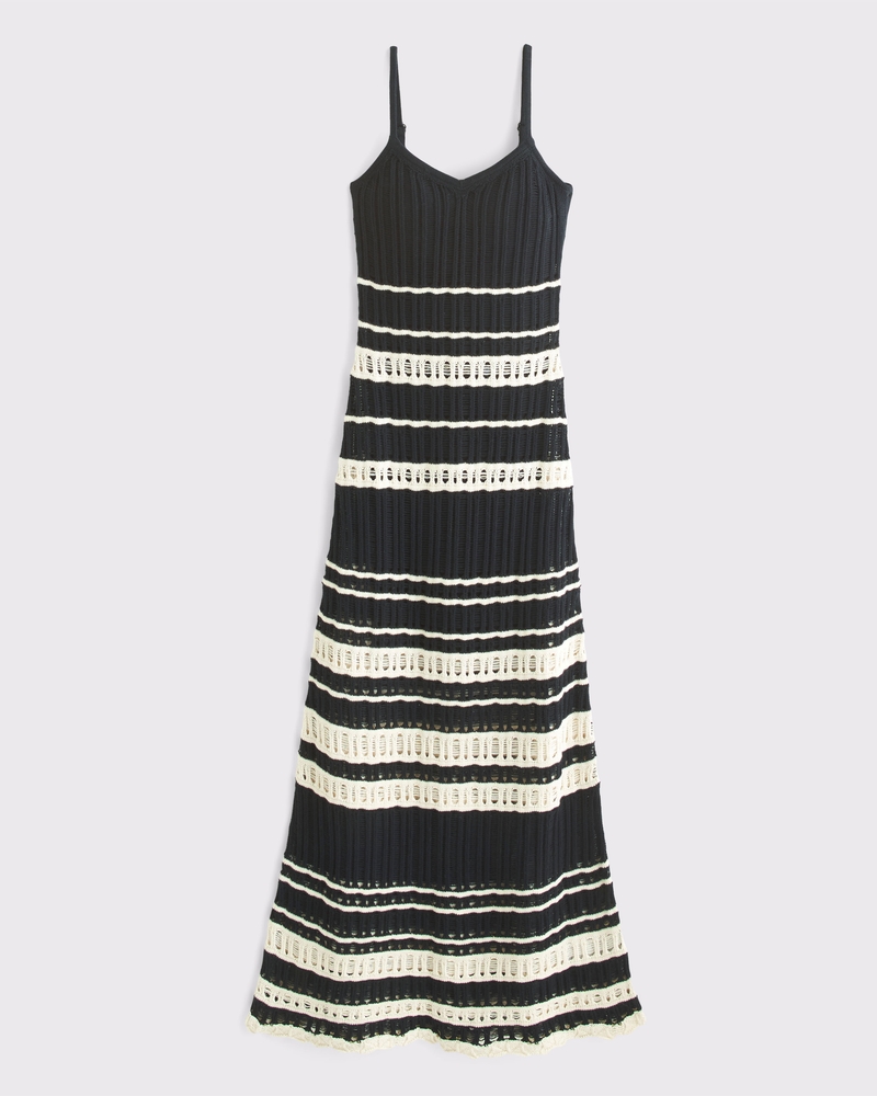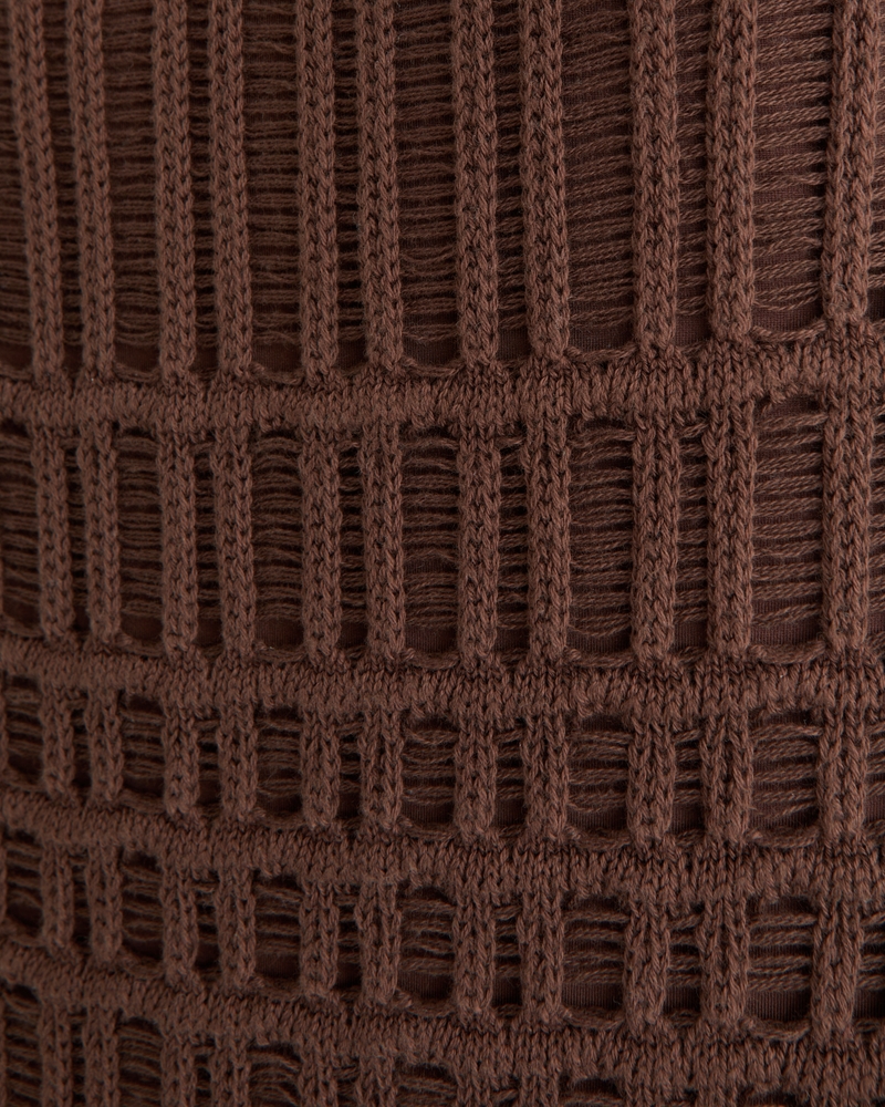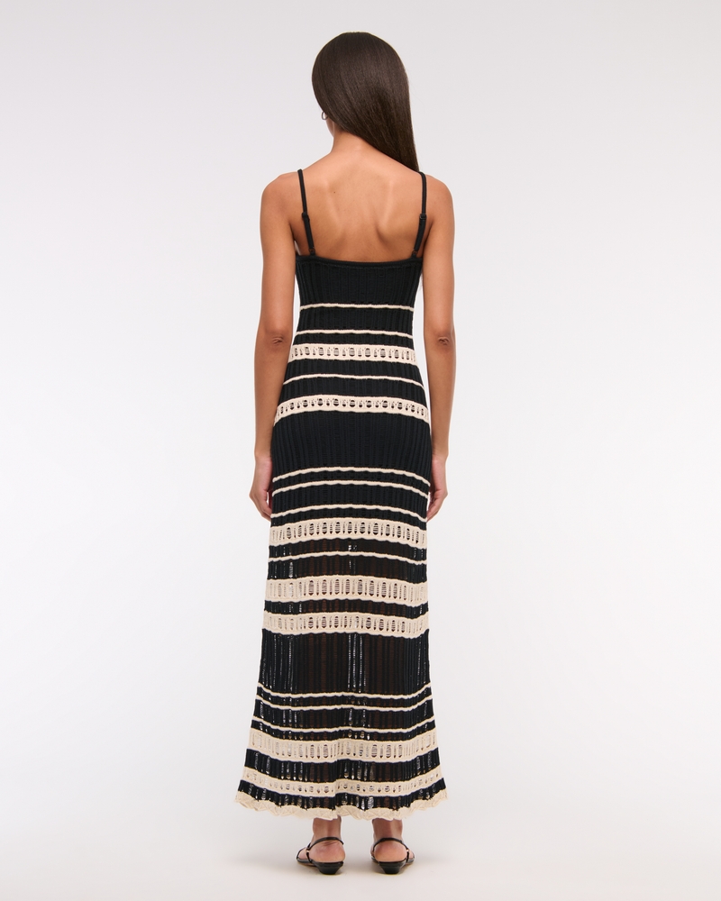 Flattering maxi dress in our soft sweater-yarn fabric, featuring contrast tiered stitching details throughout, a side-slit detail and all-over crochet-style detail.