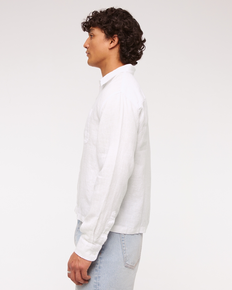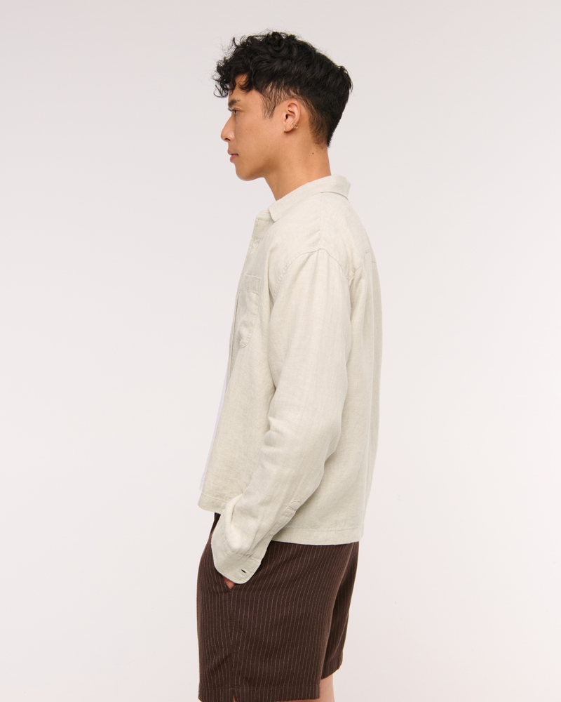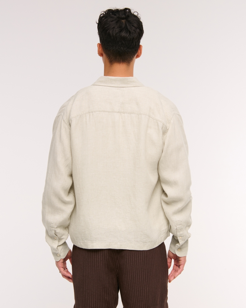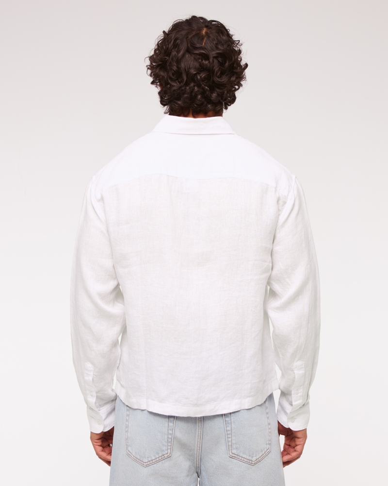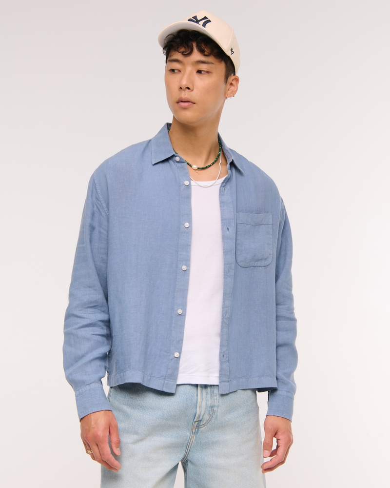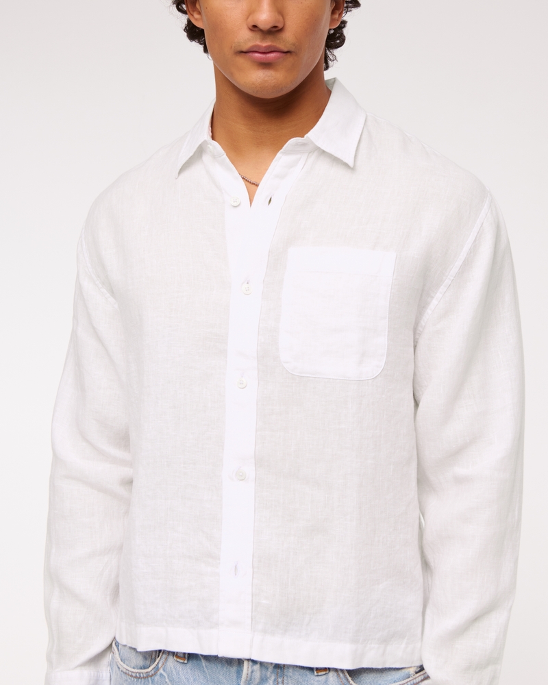 Comfortable long-sleeve button-up shirt in our 100% linen fabric and new cropped length. Features a classic collar, left chest pocket and straight hem. Imported.