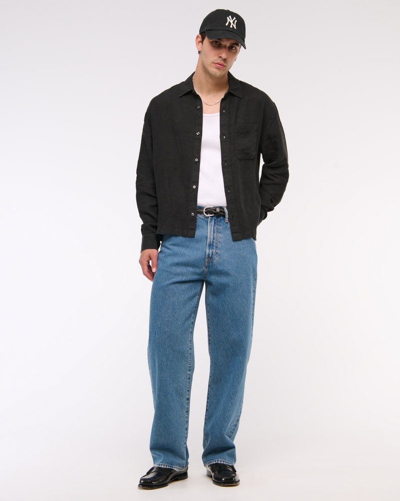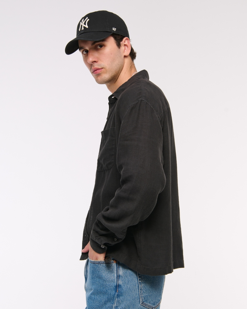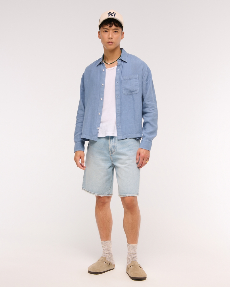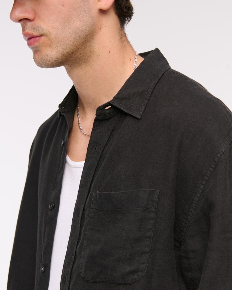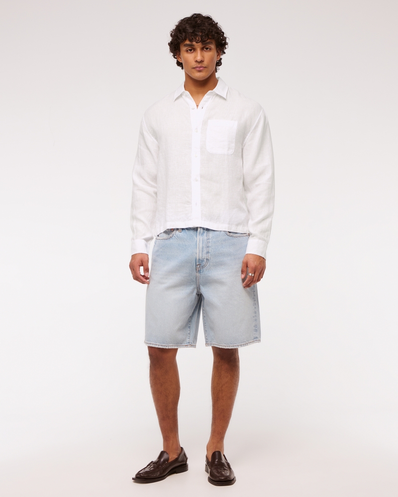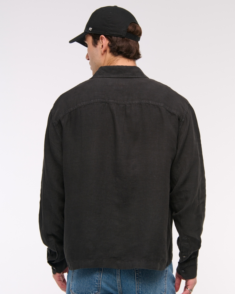 Comfortable long-sleeve button-up shirt in our 100% linen fabric and new cropped length. Features a classic collar, left chest pocket and straight hem. Imported.