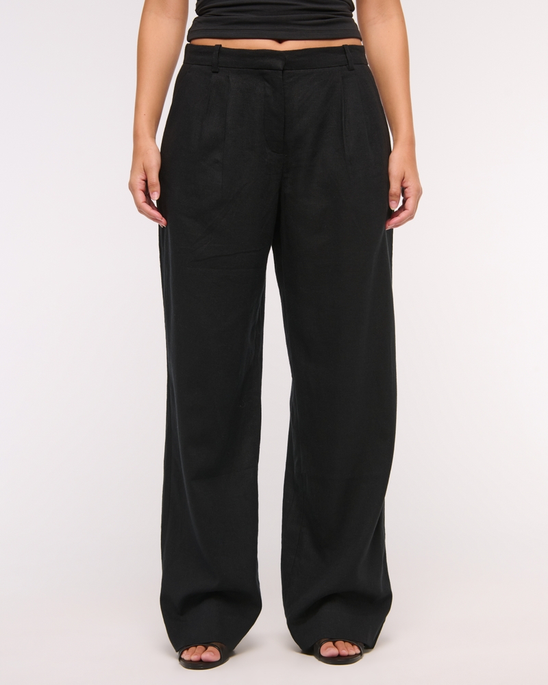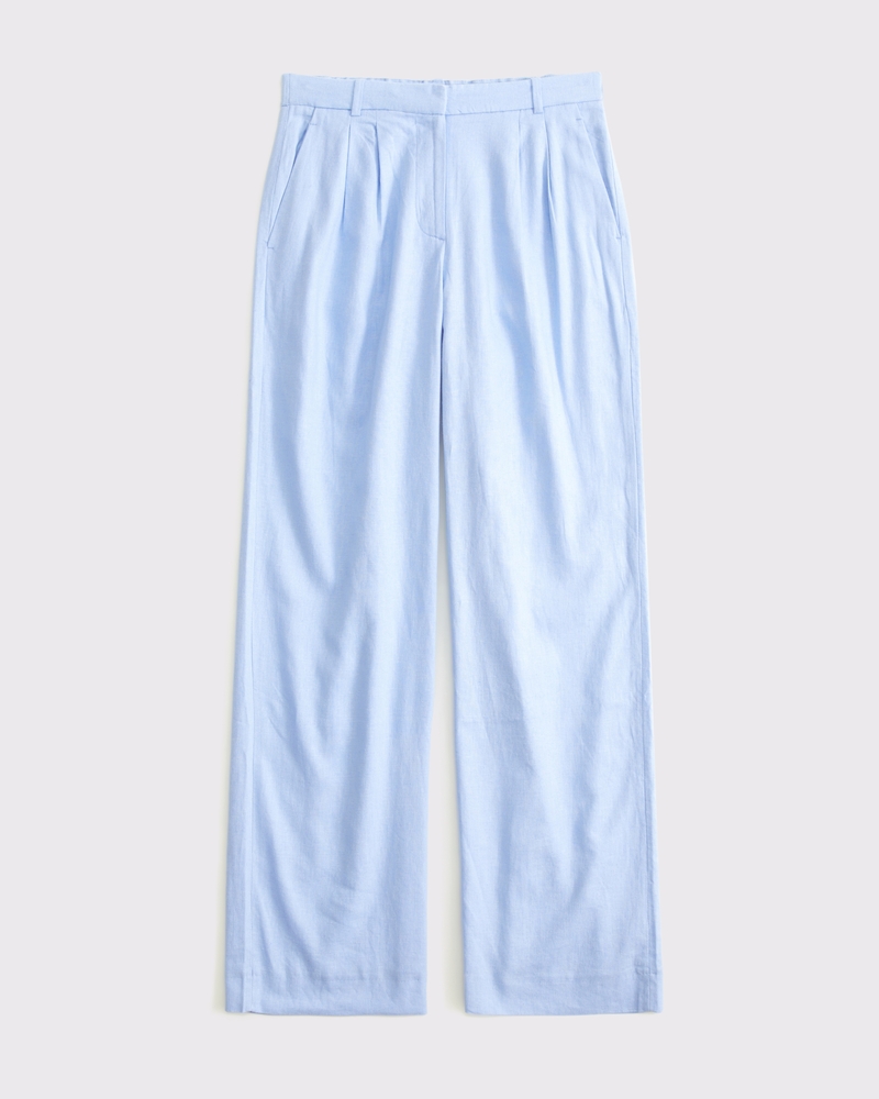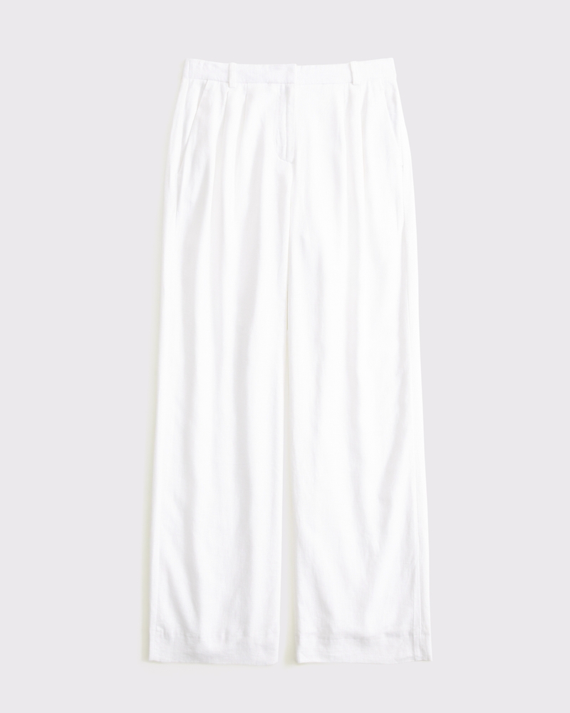 Our signature A&F Sloane Tailored Pant with a low rise, in our breezy linen-blend fabric, that’s perfect for dressing up or down. Featuring figure-flattering pleating details, a functional fly and pockets and a partially elasticated waistband for ultimate adjustability. The viral fit that eliminates waist gap: Curve Love features additional room through the hip and thigh for curve-hugging comfort. Imported.