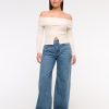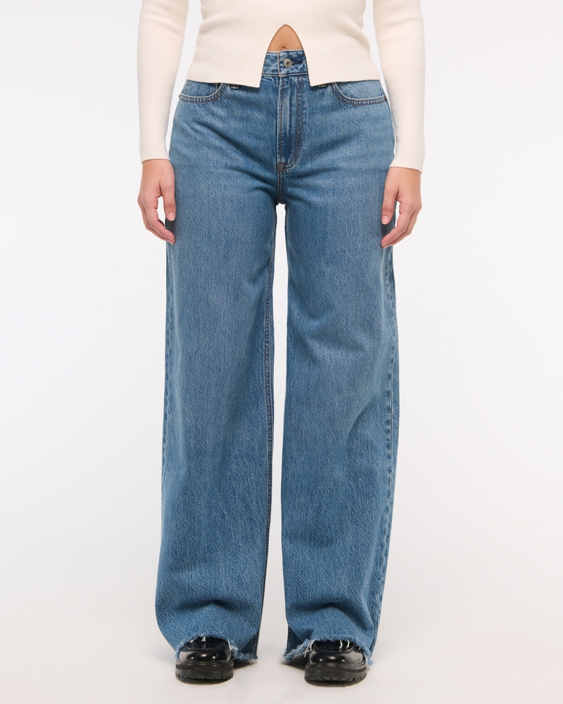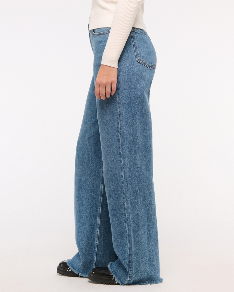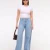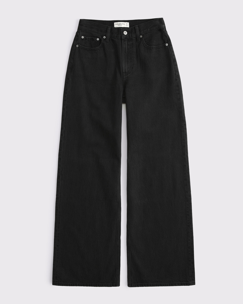 Our Curve Love high rise wide leg jeans in a black wash with a clean hem. This fit features a 10.5” high rise, is relaxed at the waist and hips, and eases into a wide, full-length leg shape. The viral fit that eliminates waist gap: Curve Love features additional room through the hip and thigh for curve-hugging comfort. This jean is made from our super light drapey denim fabric, which features a super soft lightweight rigid denim. Imported.