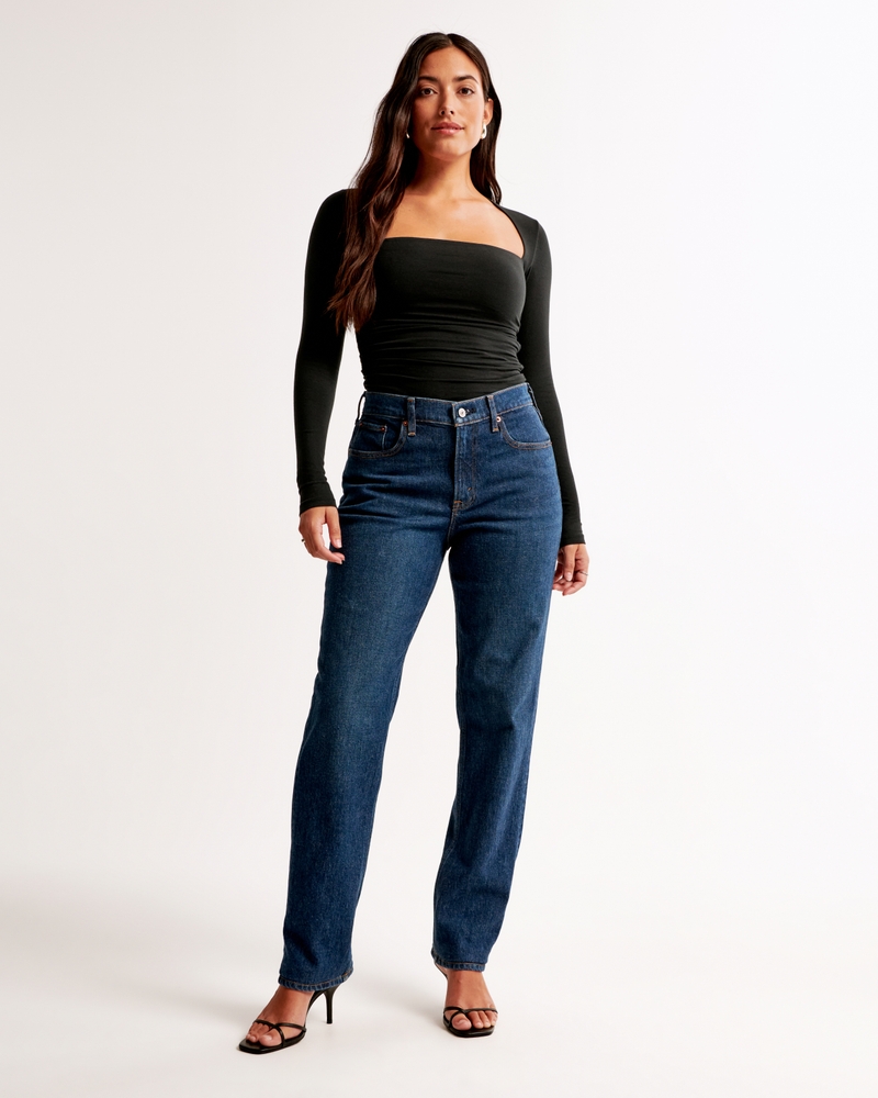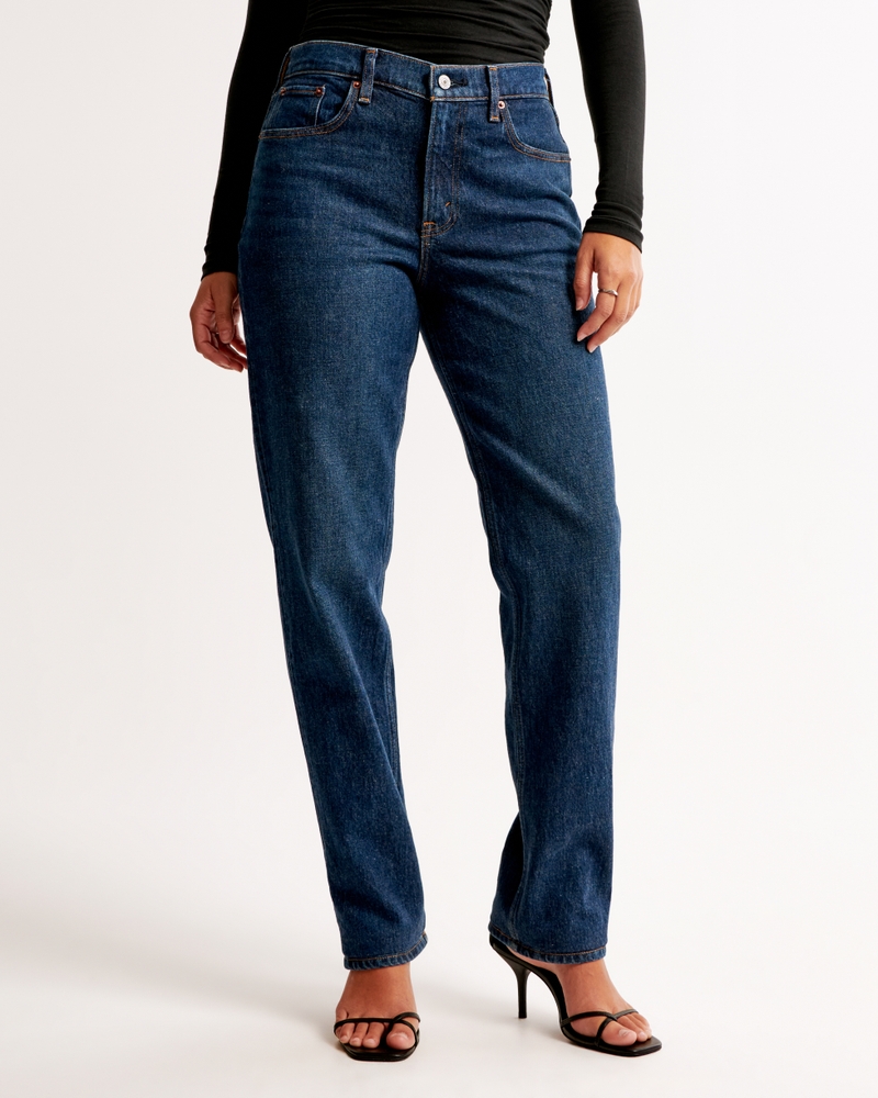 Our Curve Love 90’s-style jeans in a super dark rinse wash with a clean hem. This fit features a 9.5” mid rise, is fitted at the waist and hips, and eases at the thigh into a straight, full-length leg shape. The viral fit that eliminates waist gap: Curve Love features additional room through the hip and thigh for curve-hugging comfort. This jean is made from our vintage stretch fabric which features both an authentic vintage look and contains slight built-in stretch for additional comfort. Imported.
