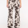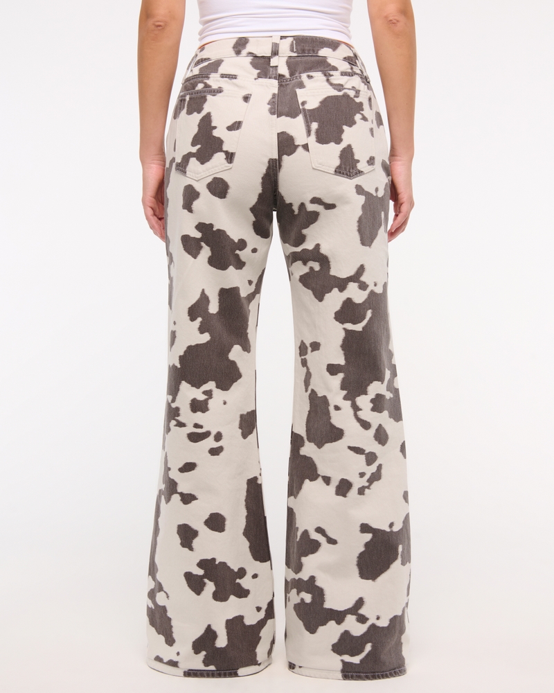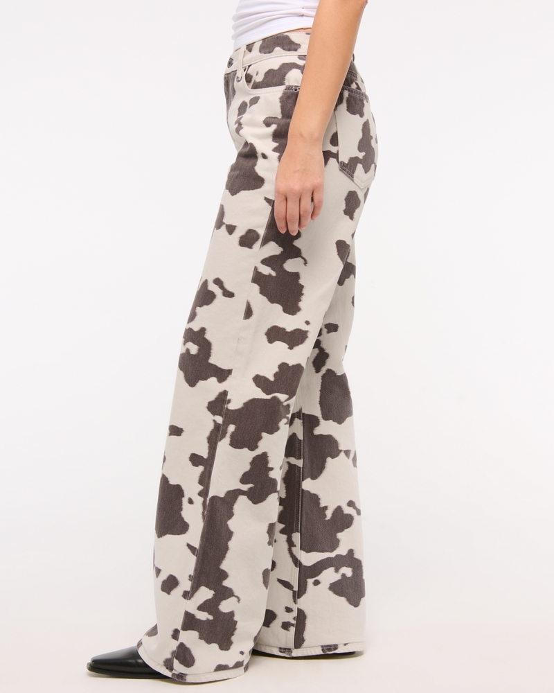 Our Curve Love baggy bootcut jeans in a cow print wash with a clean hem. This fit features a 9.5" mid rise, is slouchy at the waist and hips, and eases through the thigh into a baggy bootcut leg shape. The viral fit that eliminates waist gap: Curve Love features additional room through the hip and thigh for curve-hugging comfort. This jean is made from our heavyweight rigid denim fabric, a super soft authentic cotton fabric with no stretch. Imported.