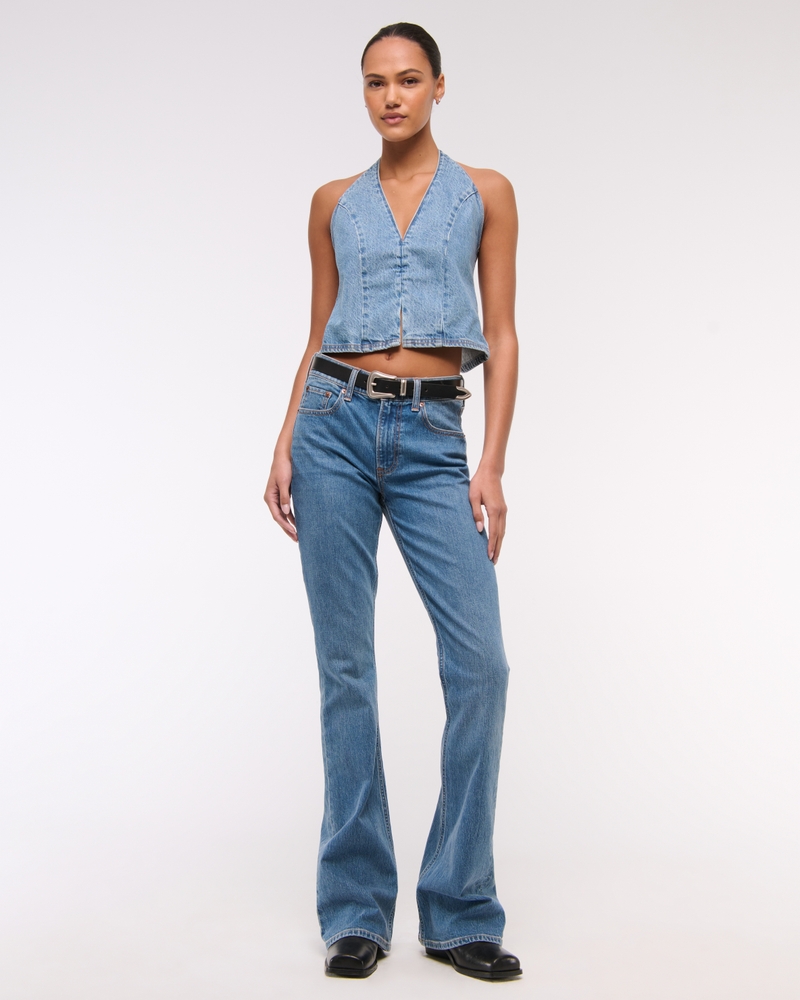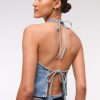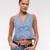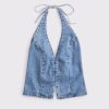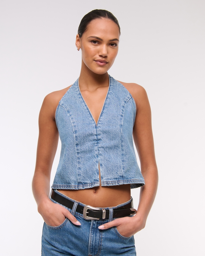 Flattering vest in our comfortable denim fabric and tailored fit, featuring adjustable ties at the halter neckline, on-trend seaming details and tie-back closure. Imported.