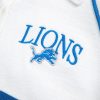 Easy-fitting polo in our structured yet stretchy, customer-favorite LuxeLoft sweater fabric, featuring a trend-forward silhouette, Detroit Lions embroidered graphic details at left chest and back, classic polo collar and banded hem and cuffs. Pairs perfect with a mini skirt for your game day look!