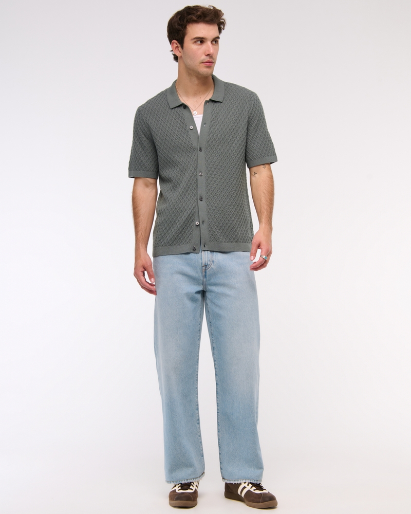 Comfortable sweater polo in a soft sweater-knit fabric and relaxed-fit silhouette, featuring button-through detail, classic polo collar, on-trend diamond stitching details throughout, tipping detail on collar and sleeves and banded hem and cuffs. Imported.