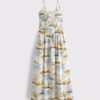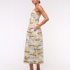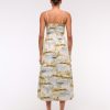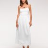 Dipped-Waist Smocked Midi Dress