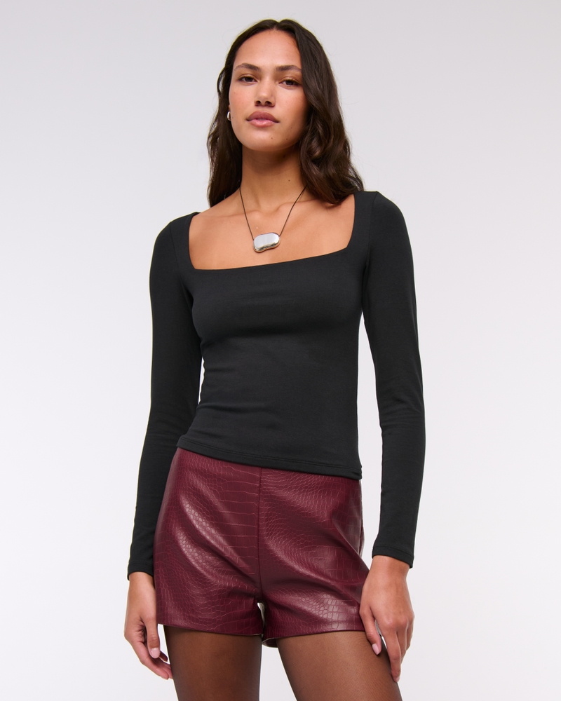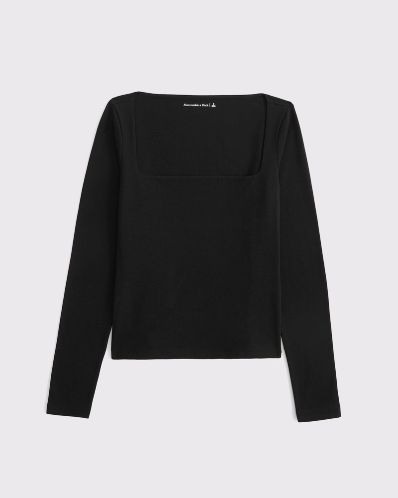 Slim-fitting long-sleeve top in our double-lined cotton-blend seamless fabric, with a square neckline. Our 2-ply cotton-blend seamless fabric is double-lined for an added layer of coverage! Imported.