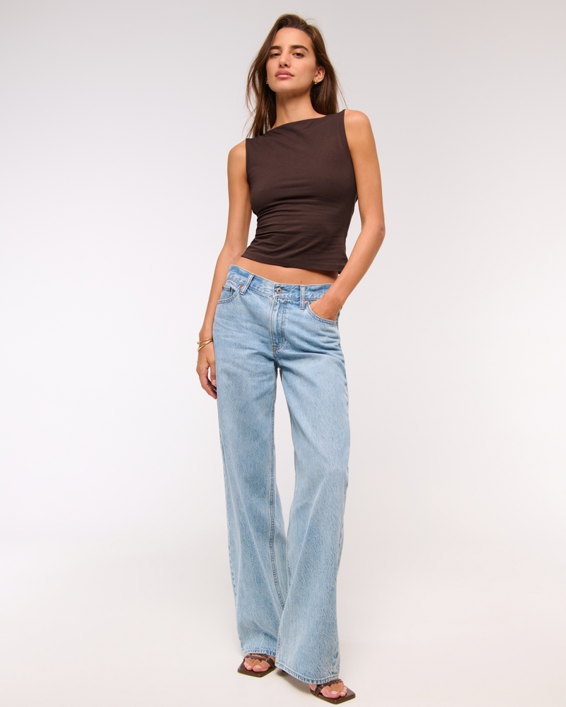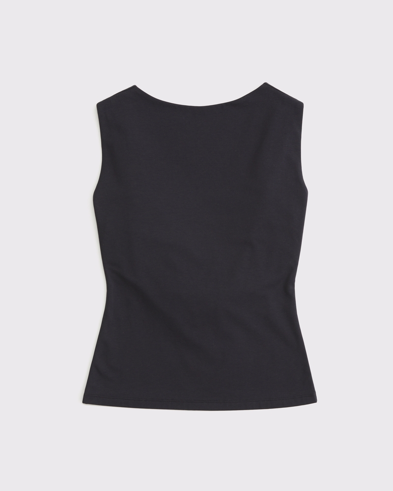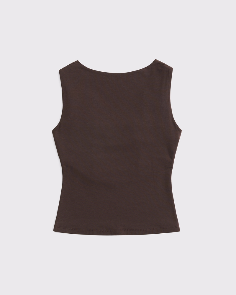 Slim-fitting top in our new softAF cotton-modal fabric, with on-trend slash neckline, hardware detail and draped cowl back detail. Imported.