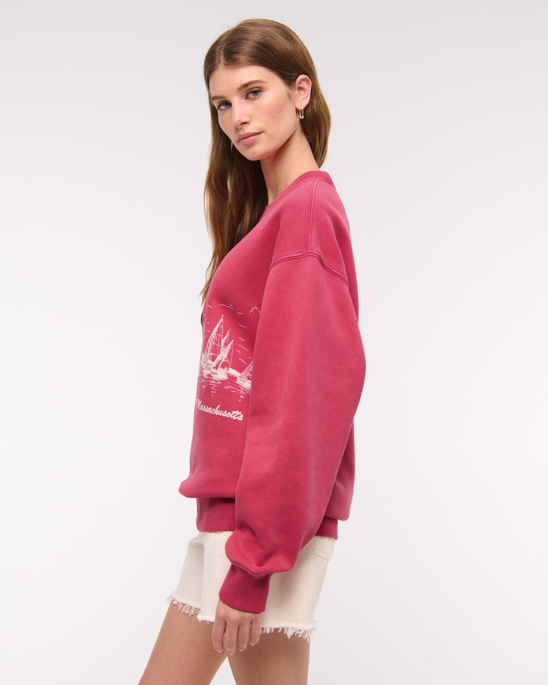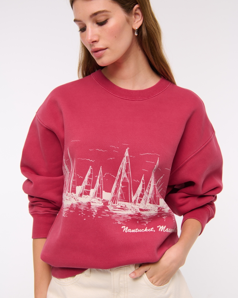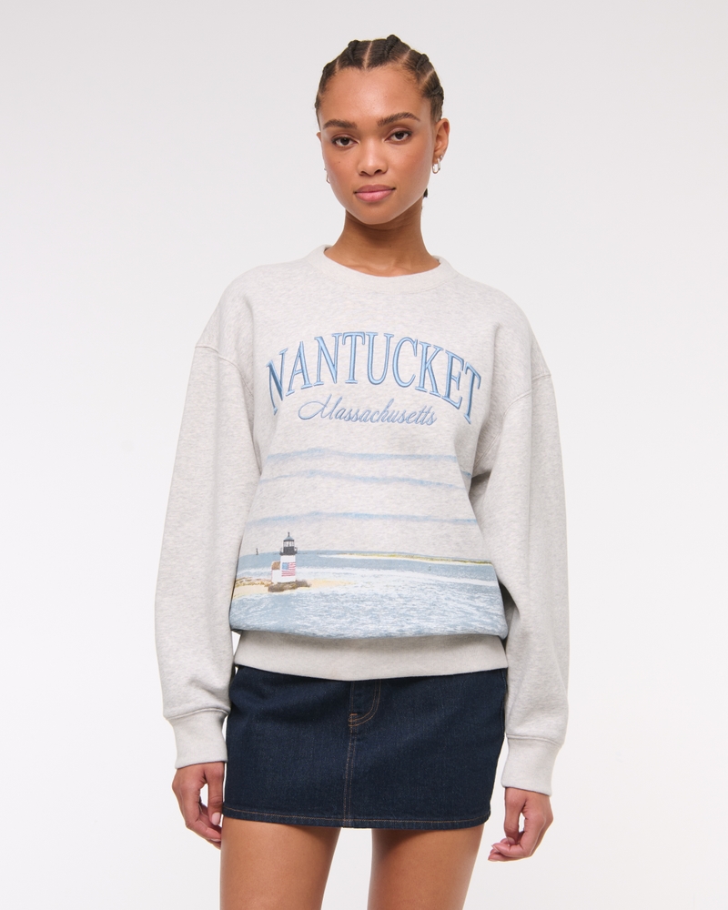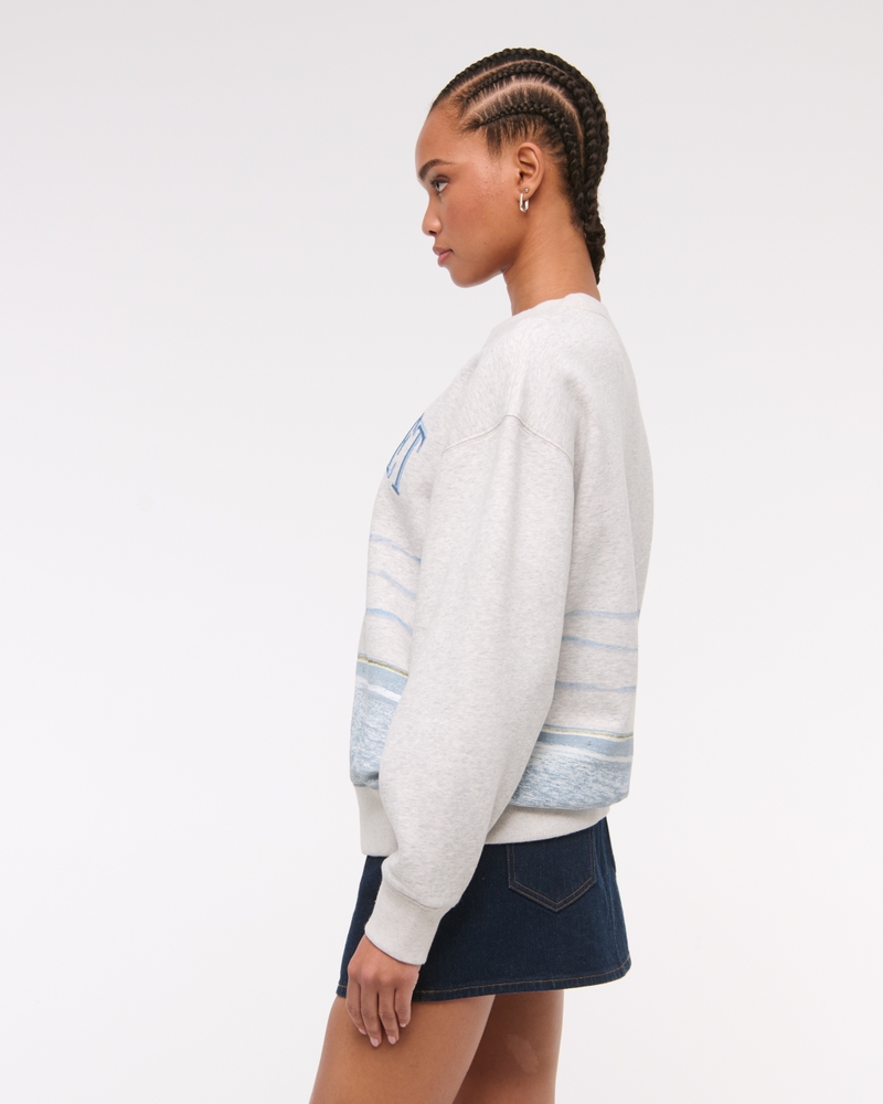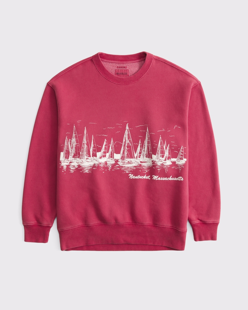 Comfy sweatshirt in our Soft A&F MAX heavyweight fleece fabric and legging-friendly length, featuring a relaxed chest width, East Coast destination-inspired graphic detail, crew neckline and banded hem and cuffs. Imported.