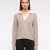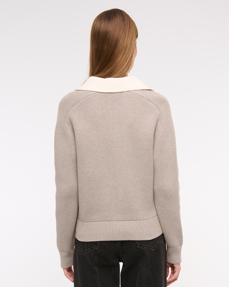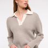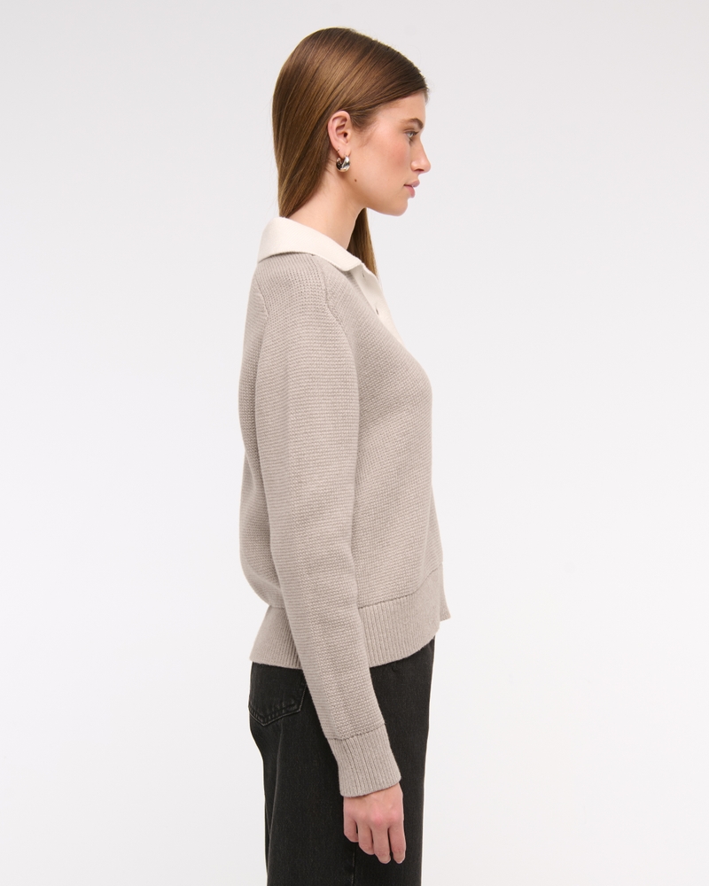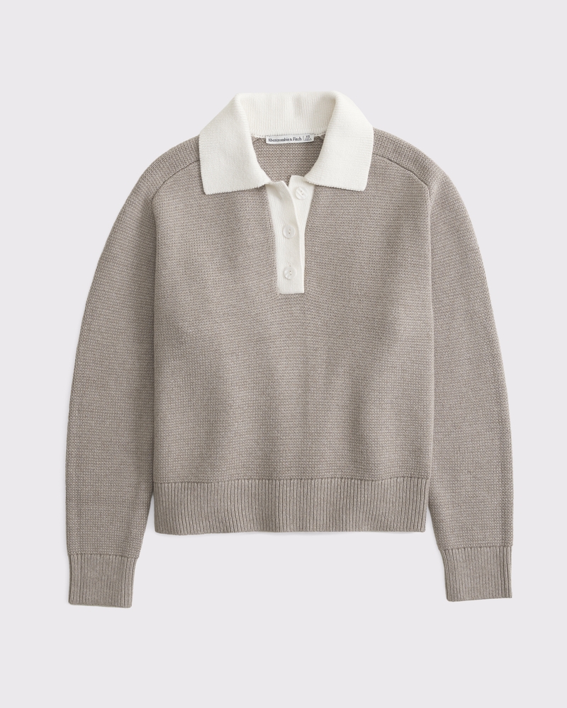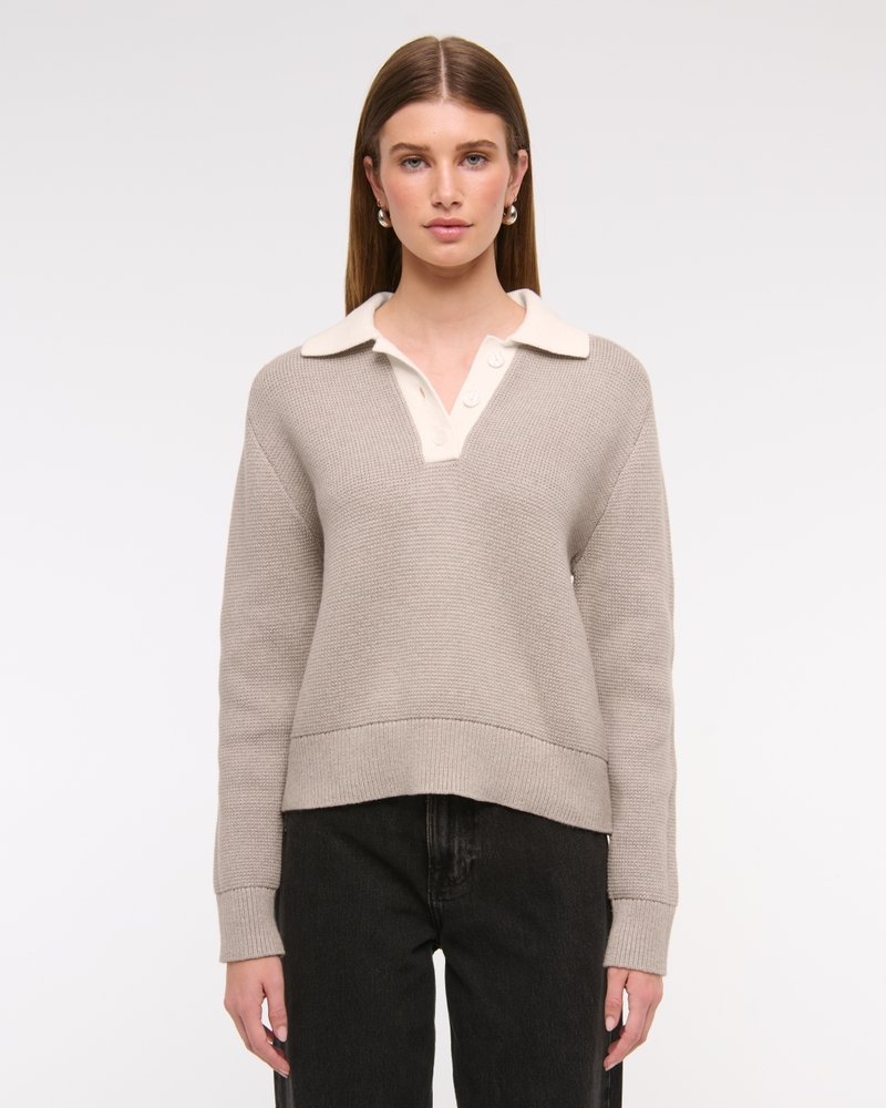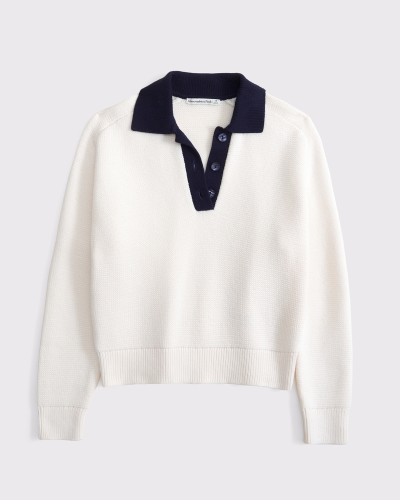 Easy-fitting long-sleeve polo in our soft sweater yarn fabric, featuring a trend-forward collared neckline with contrast tipping details and rib trims at the neckline, cuffs and hem. Pairs perfect with your favorite mini skirt!