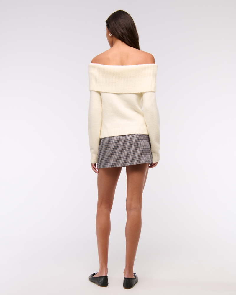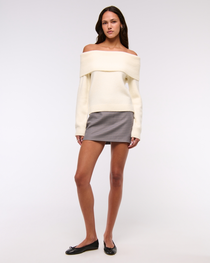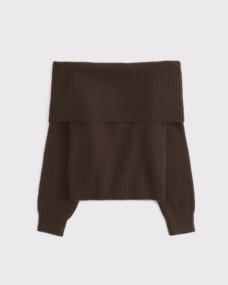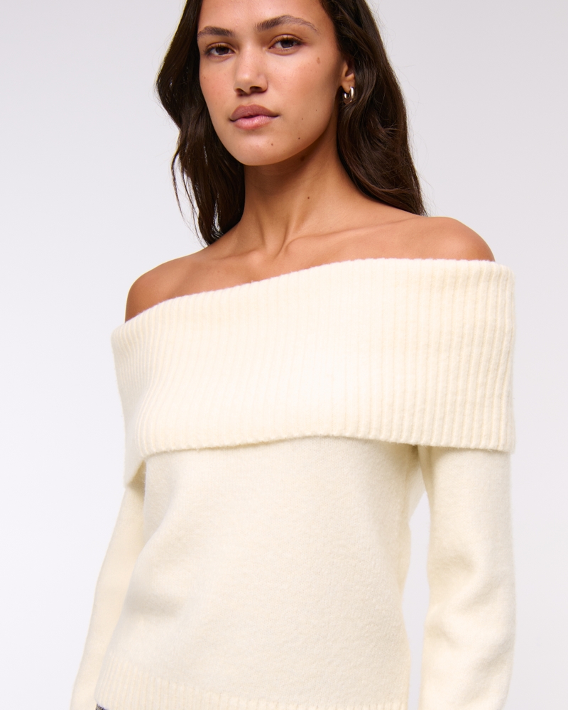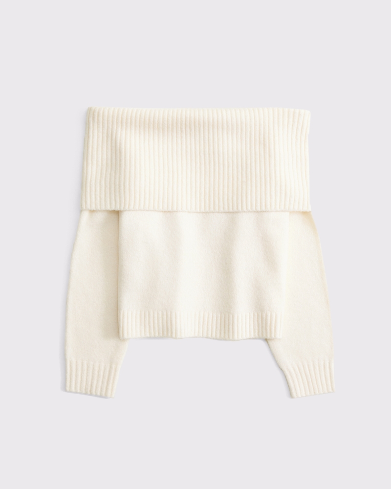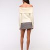 Easy-fitting sweater in our super soft sweater yarn fabric, featuring an off-the-shoulder neckline and rib trims at the cuffs and hem. Pairs perfect with your favorite mini skirt for a night out! Imported.