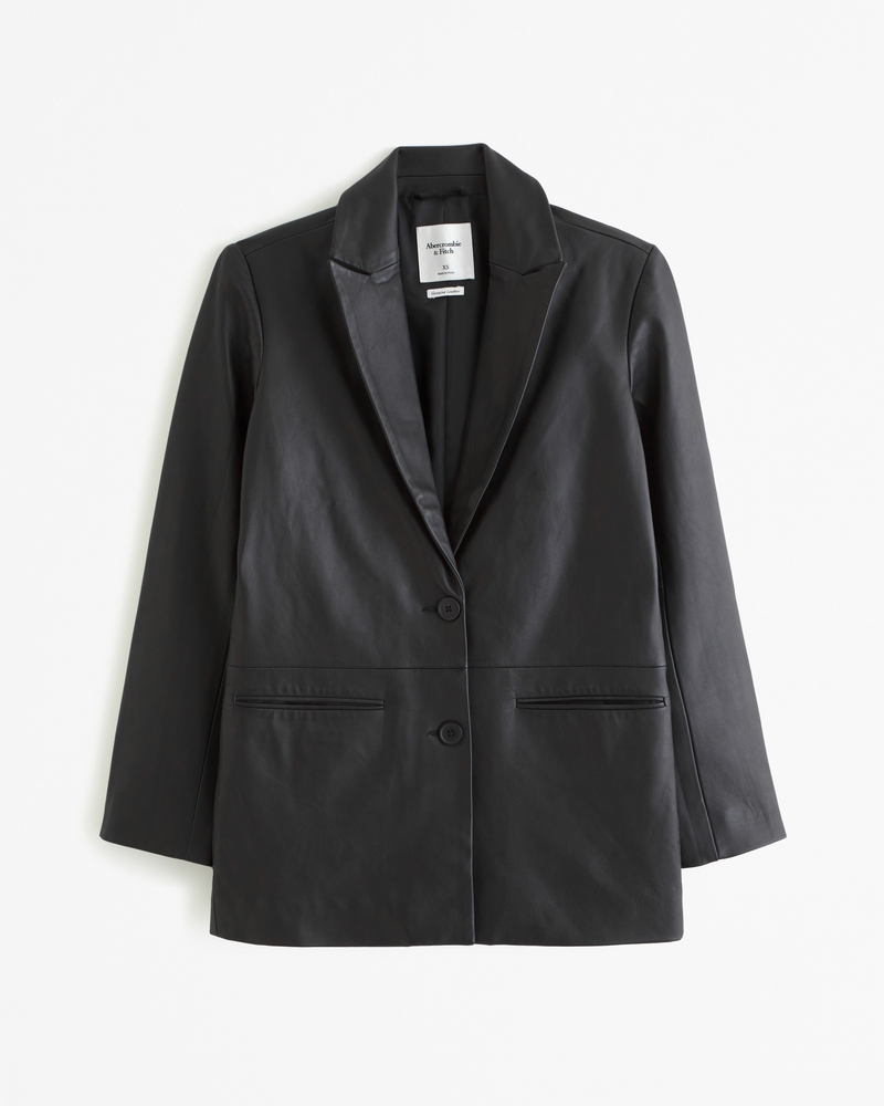 On-trend single-breasted blazer in a soft 100% leather fabric, with front pockets and button front closure. Imported.
