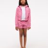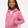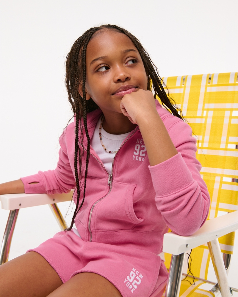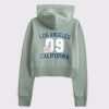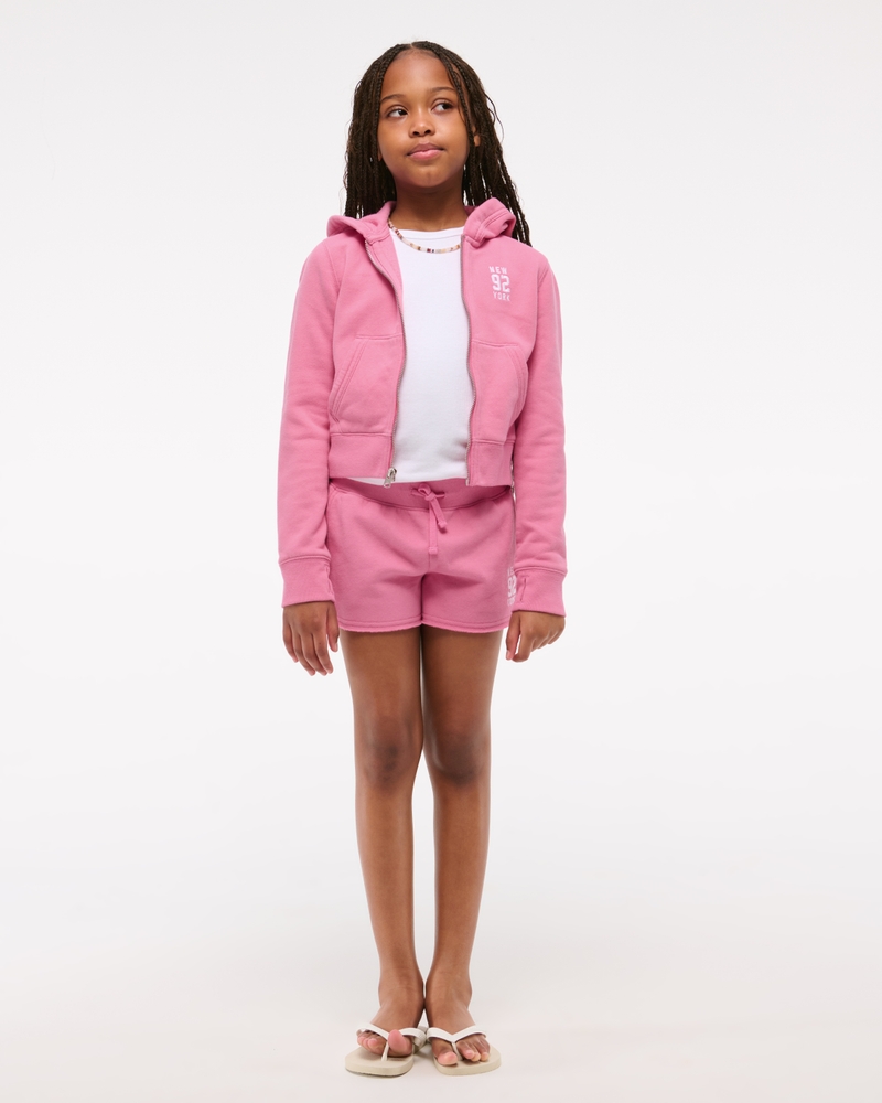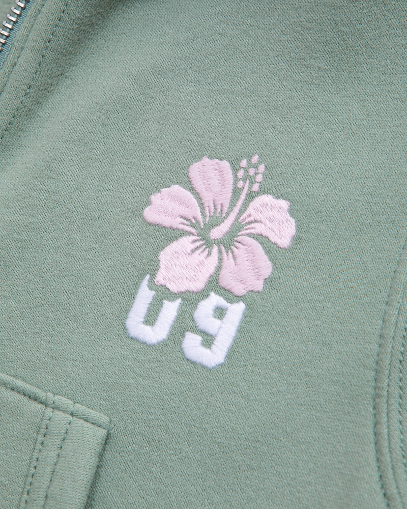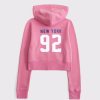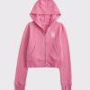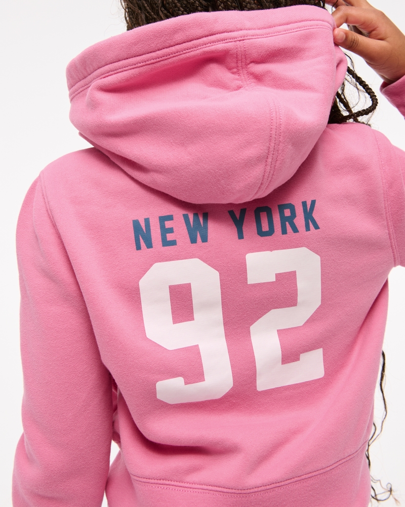 Our new full-zip hoodie in a soft fleece fabric and cropped length, that hits above the hips, featuring embroidered graphic details at left chest and back, side pockets, banded hem and thumbholes at cuffs. Imported.