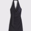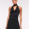 Flattering halter mini dress in our soft knit fabric, featuring ruching details along the bodice, adjustable scarf detail and cowl neckline. Imported.