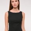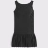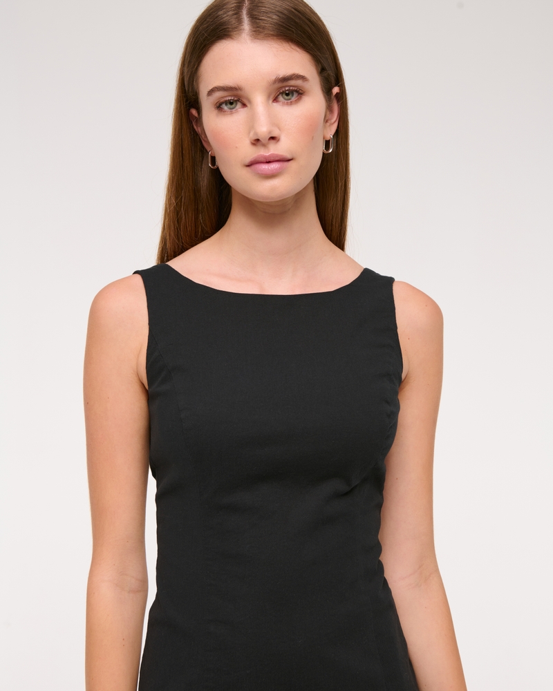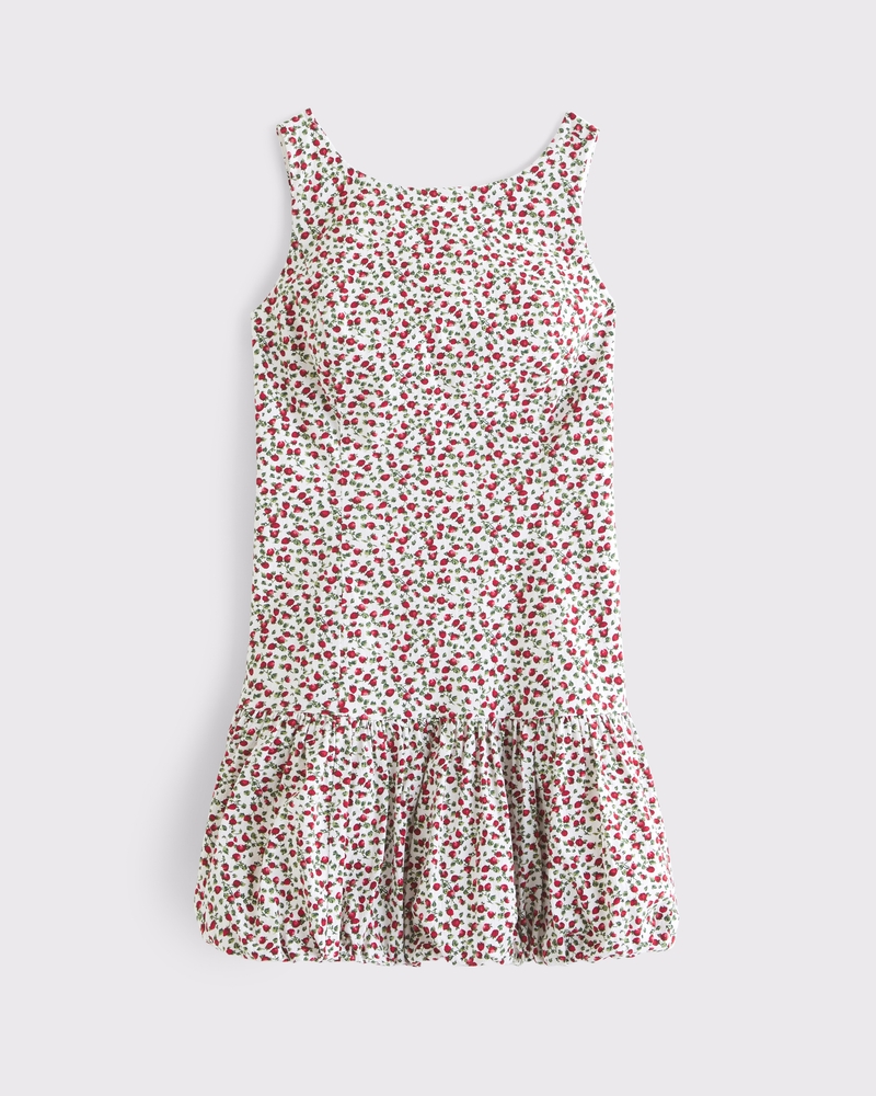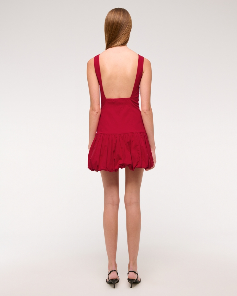 Flattering mini dress in our classic stretch-enhanced cotton-blend fabric, featuring a high neckline, open-back detail, a dropped waistline and a flattering micro bubble hem. Imported.