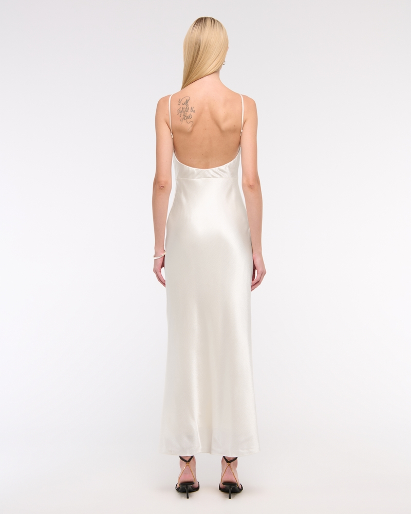 Flattering maxi dress in our soft crinkle satin fabric, featuring trendy high-neck detail, adjustable straps and an open-back detail.