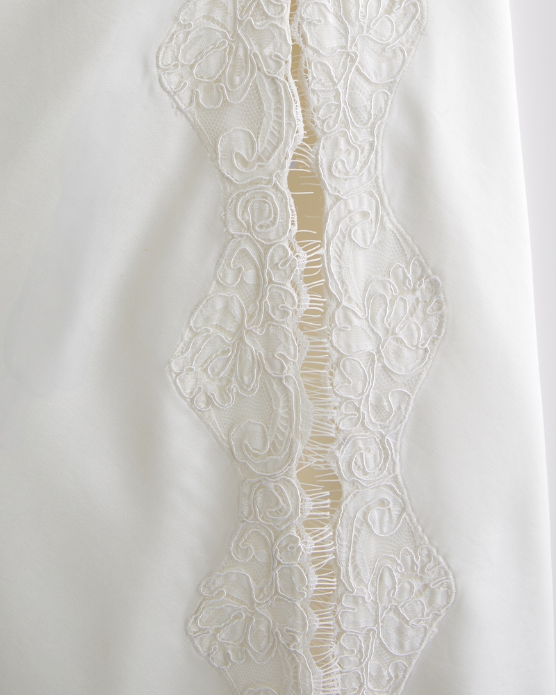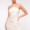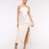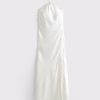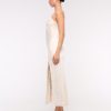 Flattering slip midi dress in our silky soft fabric, featuring a halter neckline with adjustable cross-back straps, lace-trim details along the neckline and bodice and thigh-high slit detail. Imported.