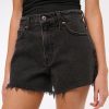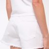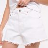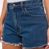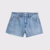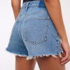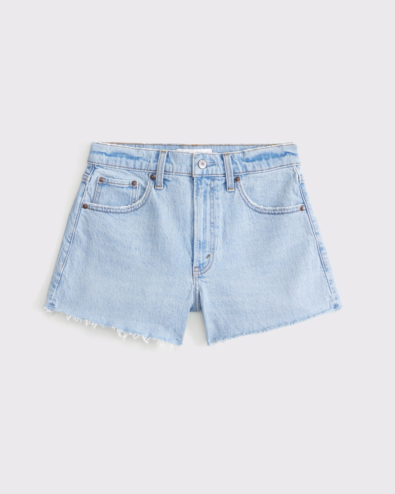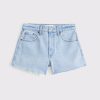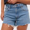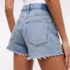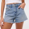 High rise 90’s-style denim with a looser fit through the leg and more room through the hip and thigh, and a 3.25 inch (8.25 cm) inseam. Vintage stretch denim in a light wash, with zipper fly and frayed hem. Imported.