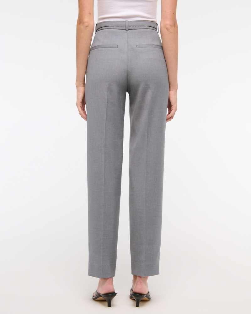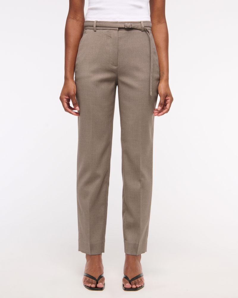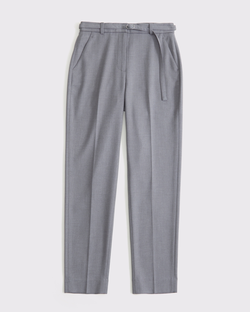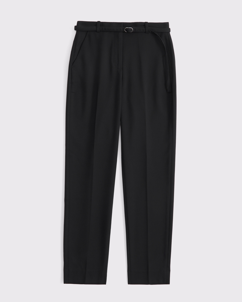 High Rise Belted Ankle Straight Pant