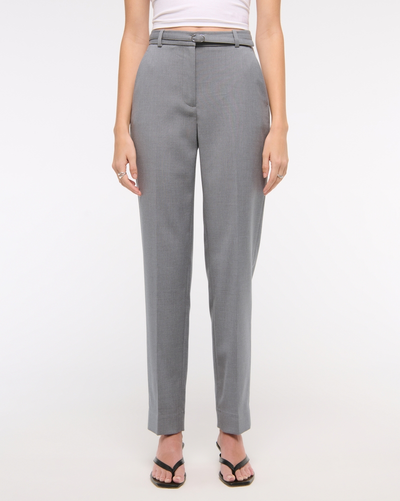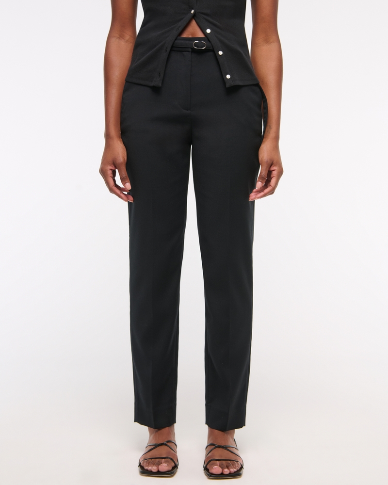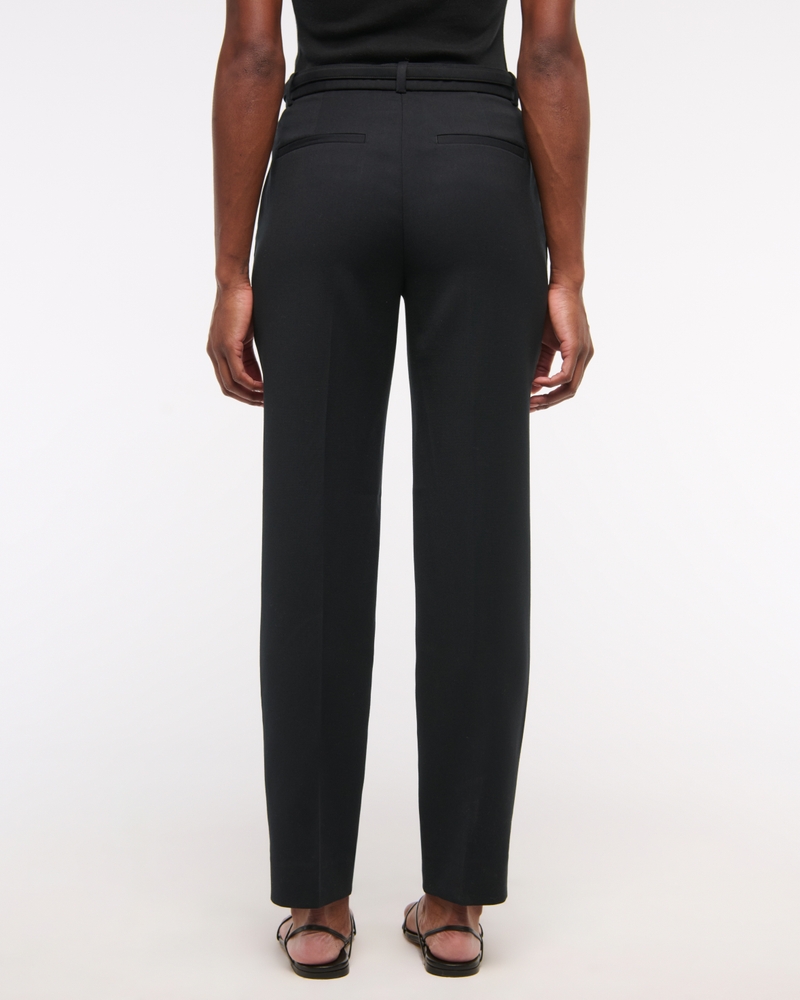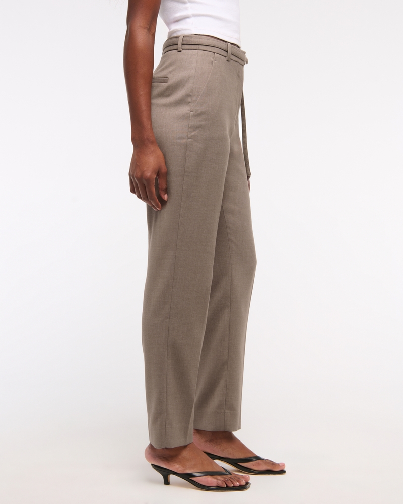 High Rise Belted Ankle Straight Pant