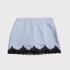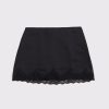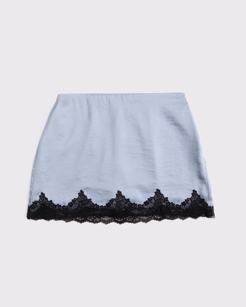 High rise mini skirt in our textured satin fabric, featuring a lace-trim lined hem and side zip closure for a secure fit. Imported.