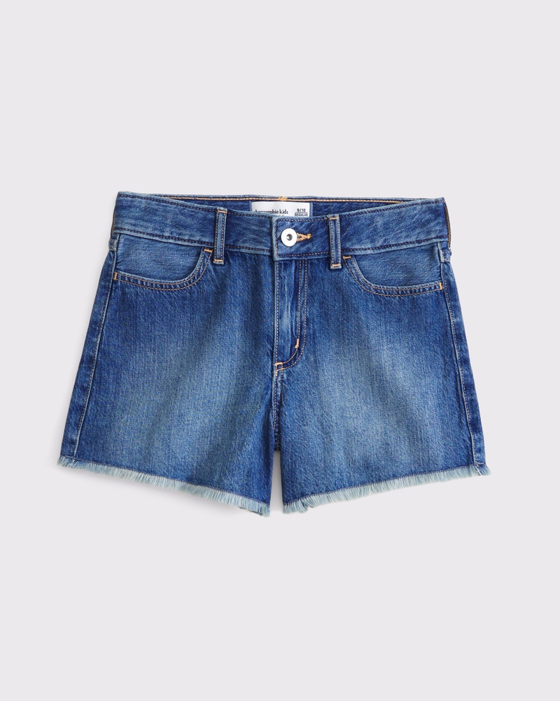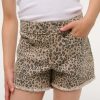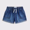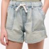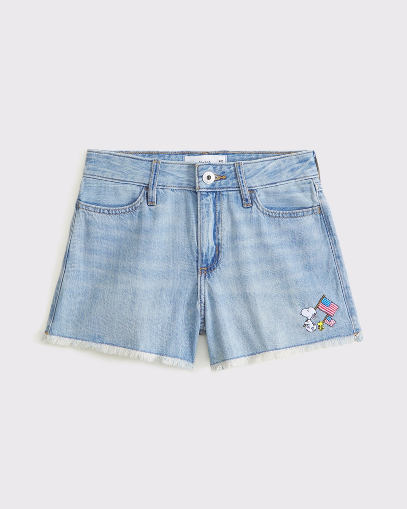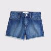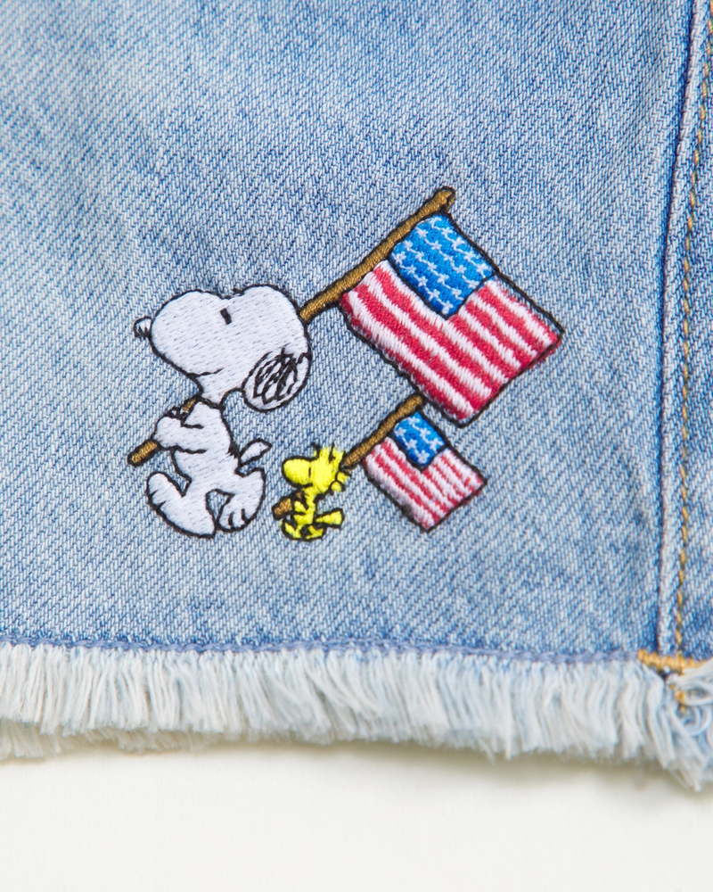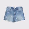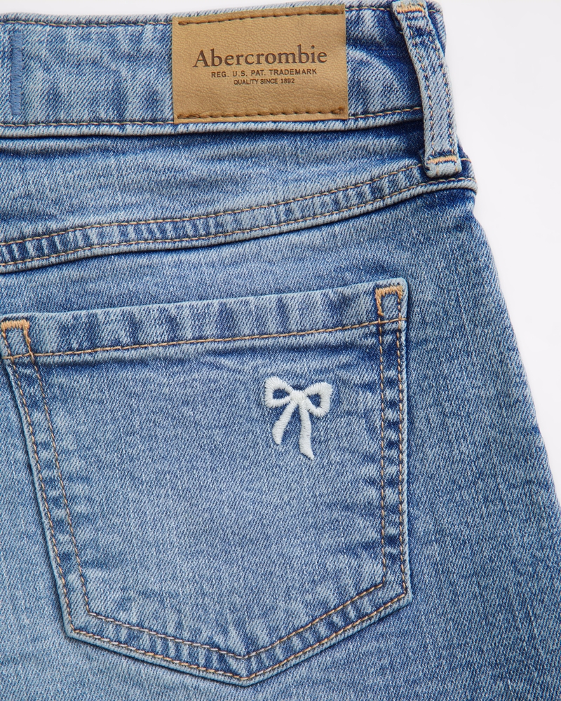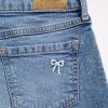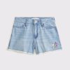 Our new high rise shorts, with a relaxed fit through the thigh, in a light wash, with all-over embroidered bow details, frayed hem, functional pockets and waistband adjusters in all sizes. Imported.