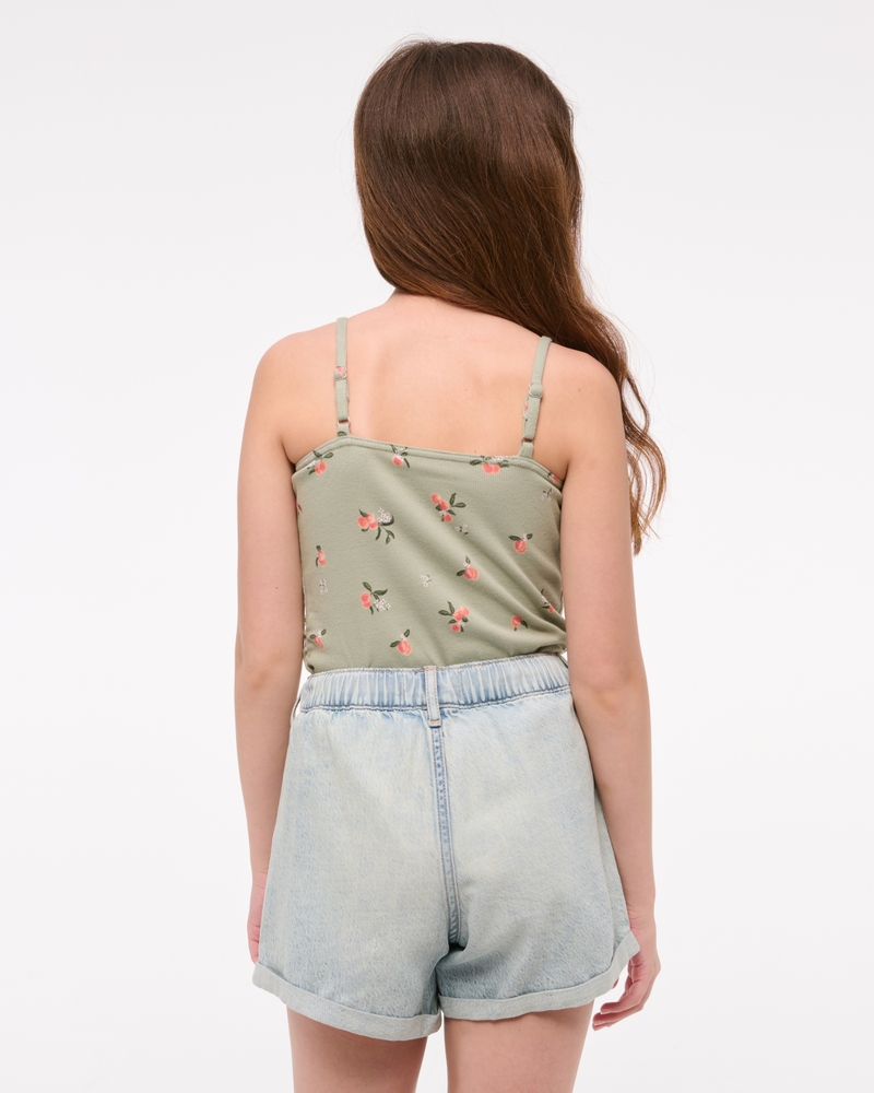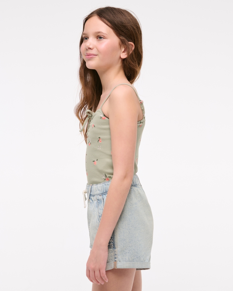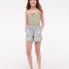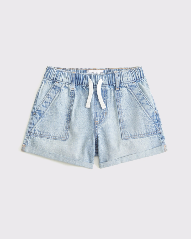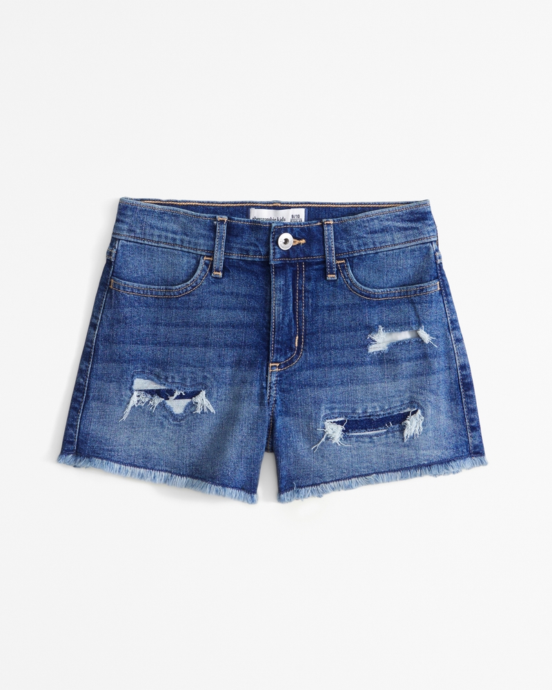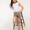 Our new high rise shorts, with a relaxed fit through the thigh, in a light wash, with all-over embroidered bow details, frayed hem, functional pockets and waistband adjusters in all sizes. Imported.