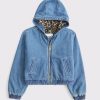 Our new full-zip workwear jacket in a denim fabric, featuring pockets, elasticated cuffs and hem, zip-up front and a cheetah pop lining. Imported. Imported.
