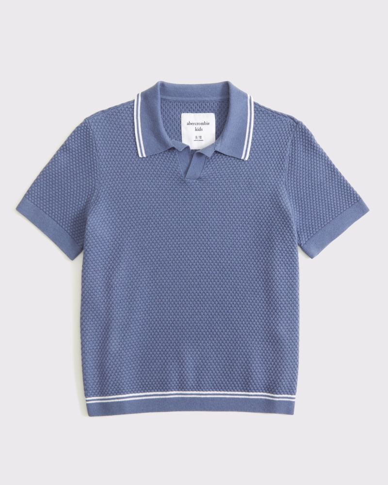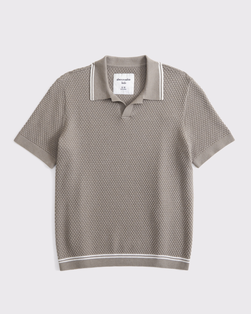 Comfortable short-sleeve sweater polo in a soft knit fabric, with no-button Johnny collar and banded hem and cuffs. Imported.