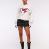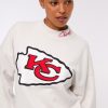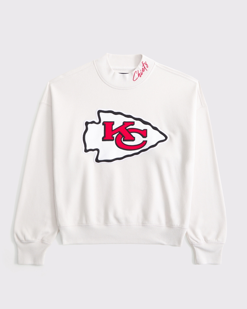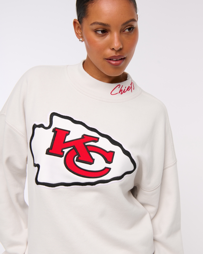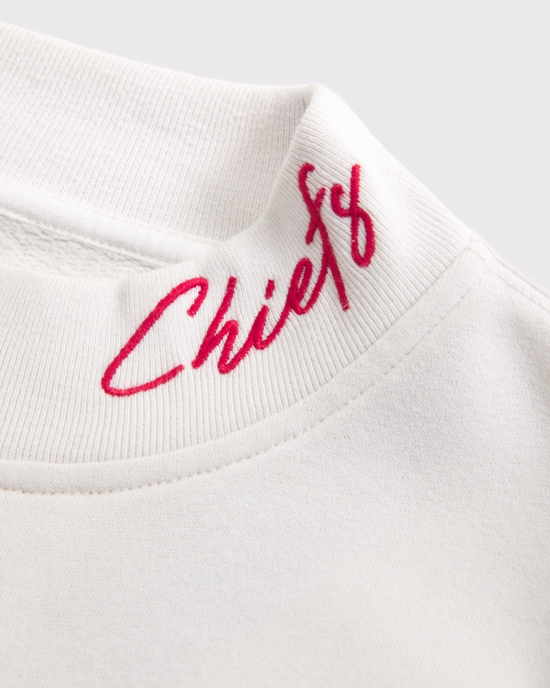 Comfy sweatshirt in our Soft A&F fleece fabric and classic Sunday silhouette, featuring a mock neckline, Kansas City Chiefs-inspired graphic detail at chest and collar and banded hem and cuffs. Imported.