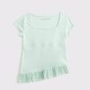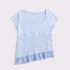 Comfy short-sleeve tee in our soft cotton-blend fabric and medium length, that hits right at the hips, featuring a babydoll silhouette, square neckline and lace-trim detail at hem. Imported.