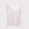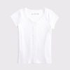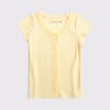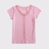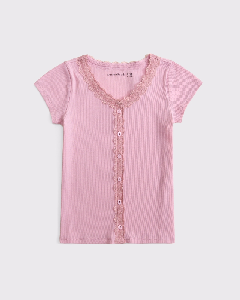 Slim-fitting short-sleeve tee in our soft knit fabric and short length, that covers the waistband and hits slightly above the hips, with on-trend button-through and lace-trim details and crew neckline. Imported.