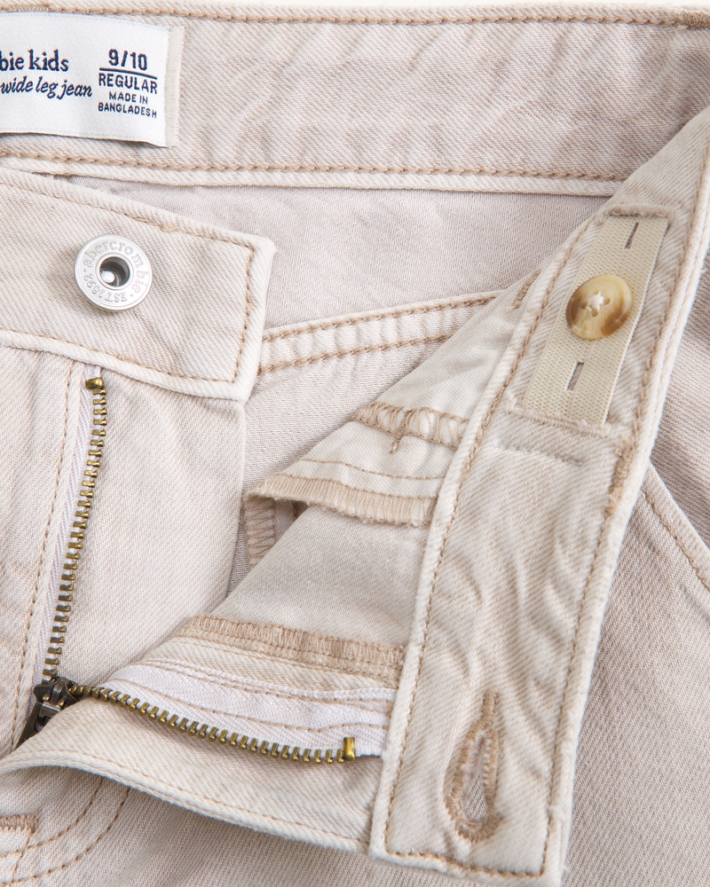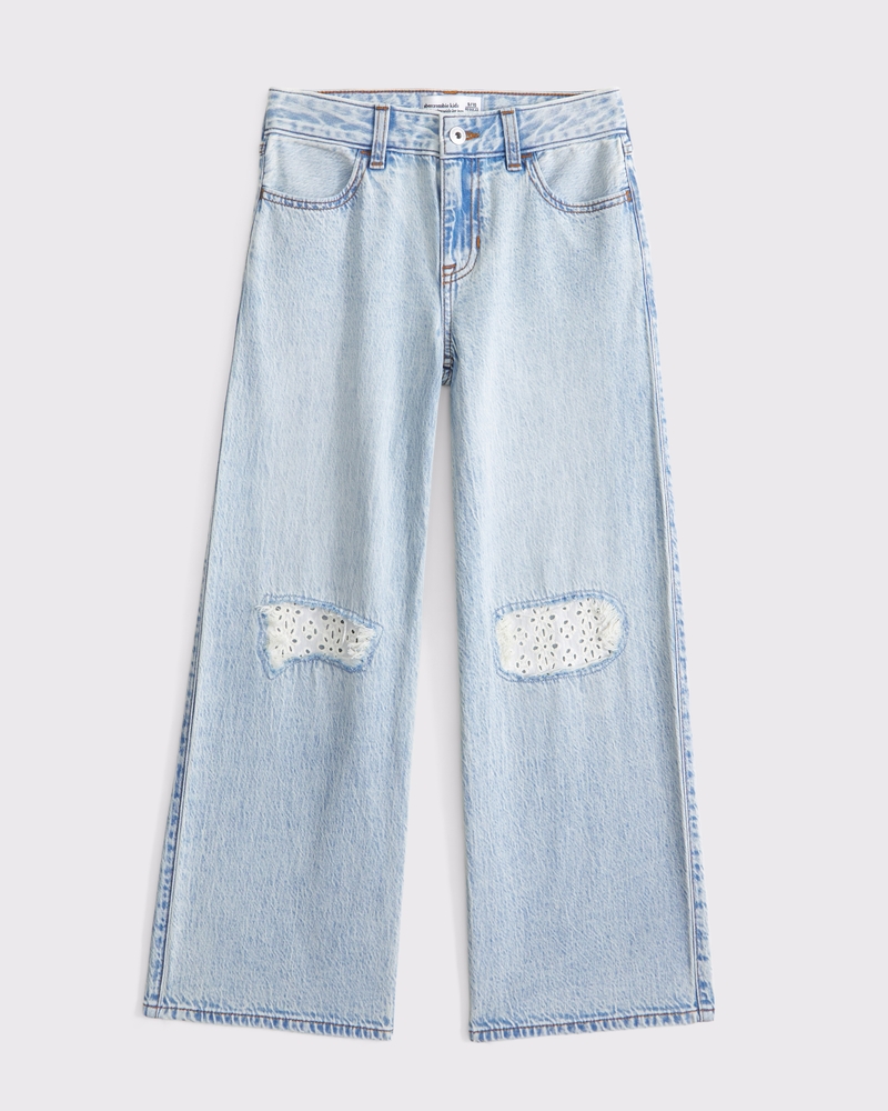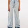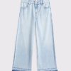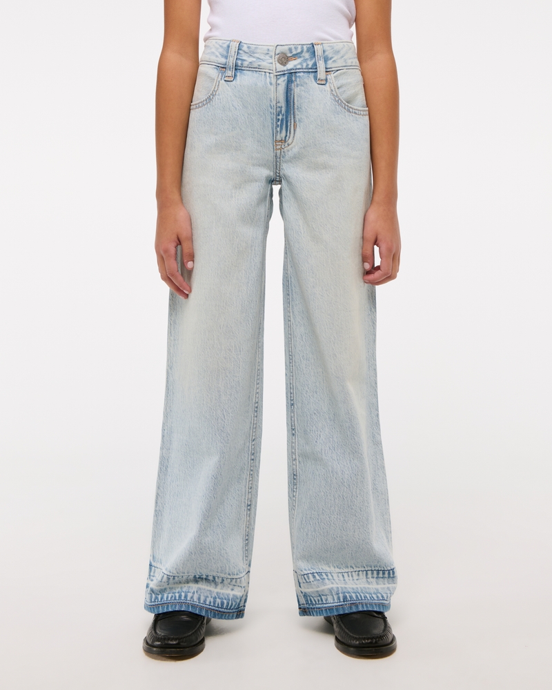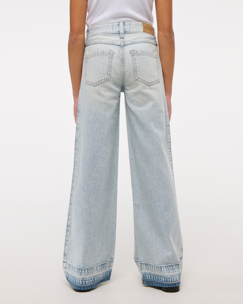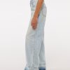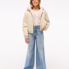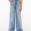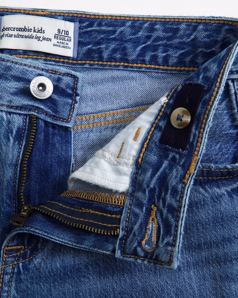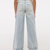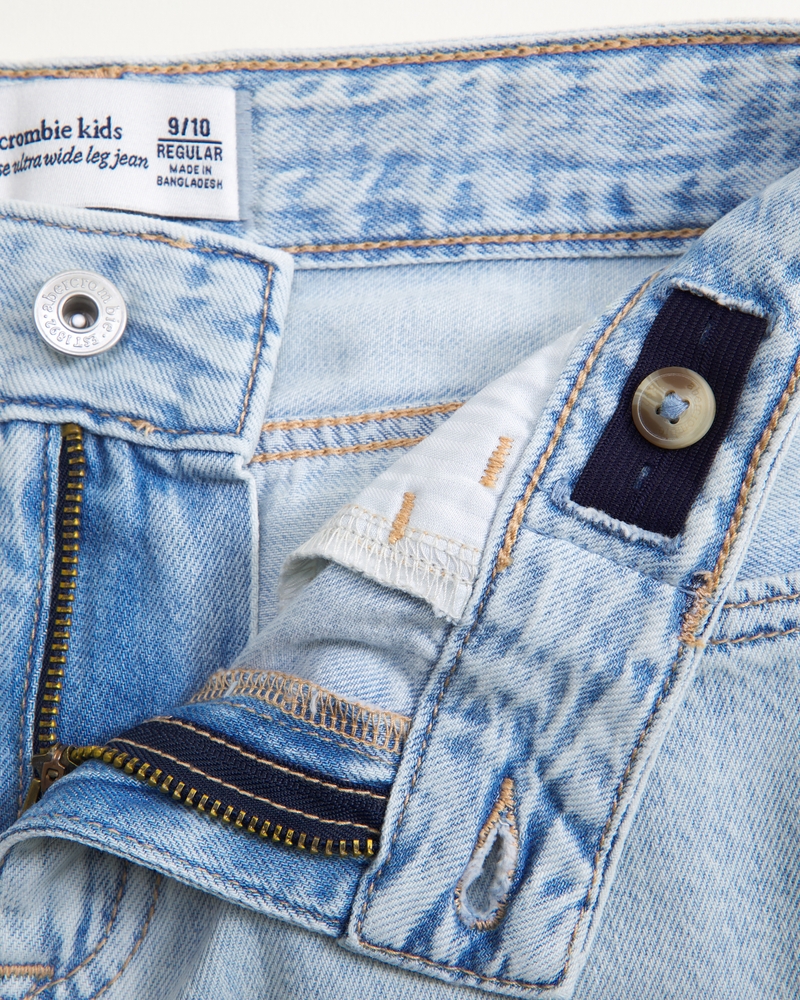 Our new high rise jeans in our comfortable lightweight denim and ultra wide-leg silhouette, with a full-length leg, light wash, functional pockets and waistband adjusters in all sizes. Imported.